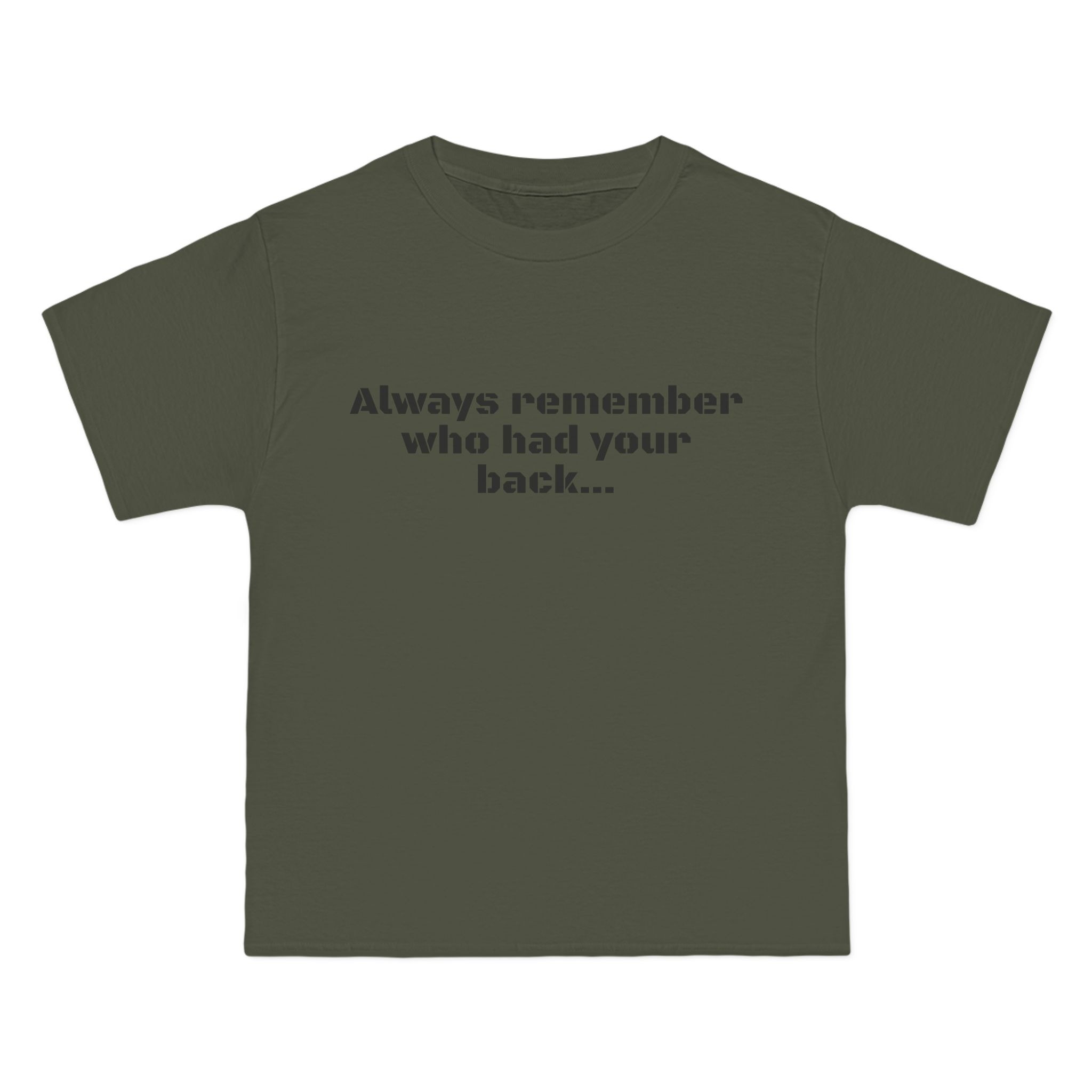 These personalized always remember… beefy-t® short-sleeve tees accommodate our personal designs to become a stylish wardrobe staple. Made with 100% pre-shrunk, ring-spun cotton for supreme softness in any occasion. With shoulder-to-shoulder taping, and double-needle stitched, lay-flat collars, sleeves, and bottom hem, these personalized t-shirts pass any durability test with flying colors while looking great.