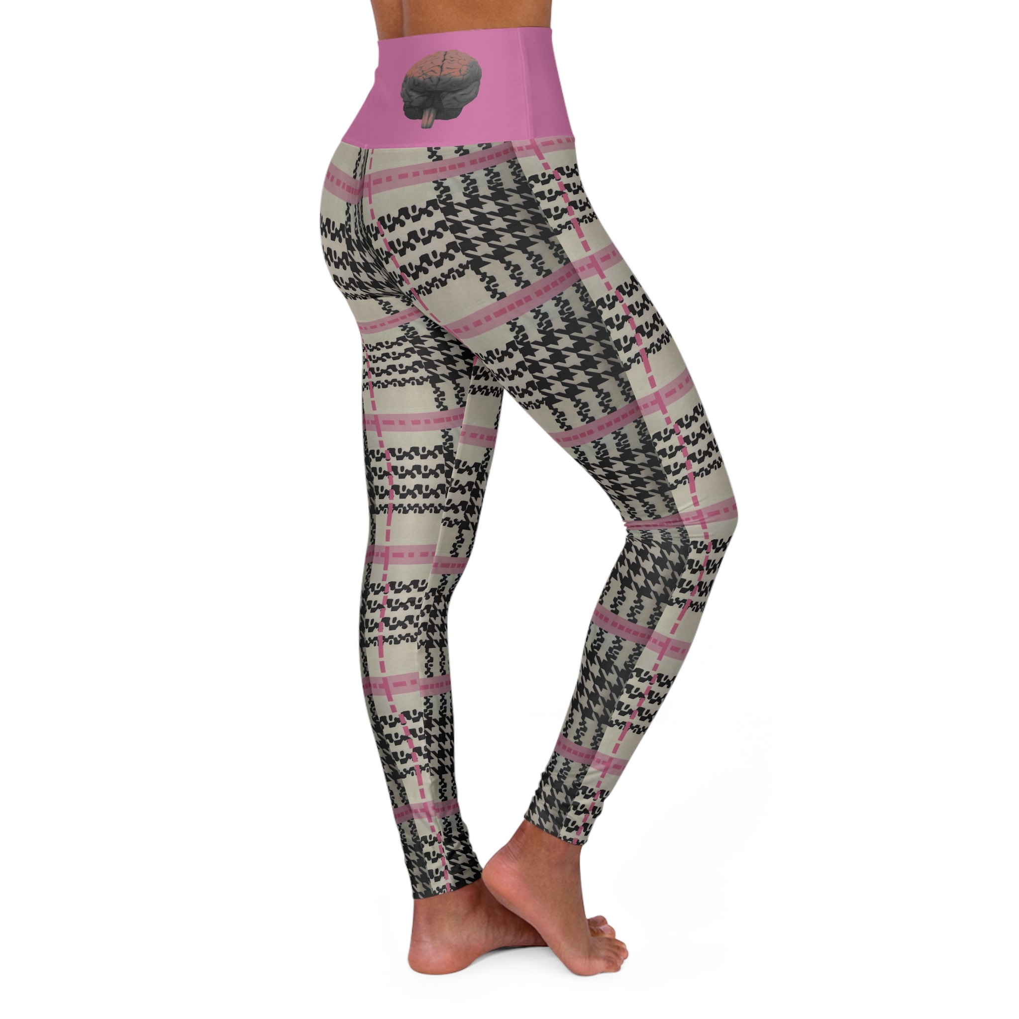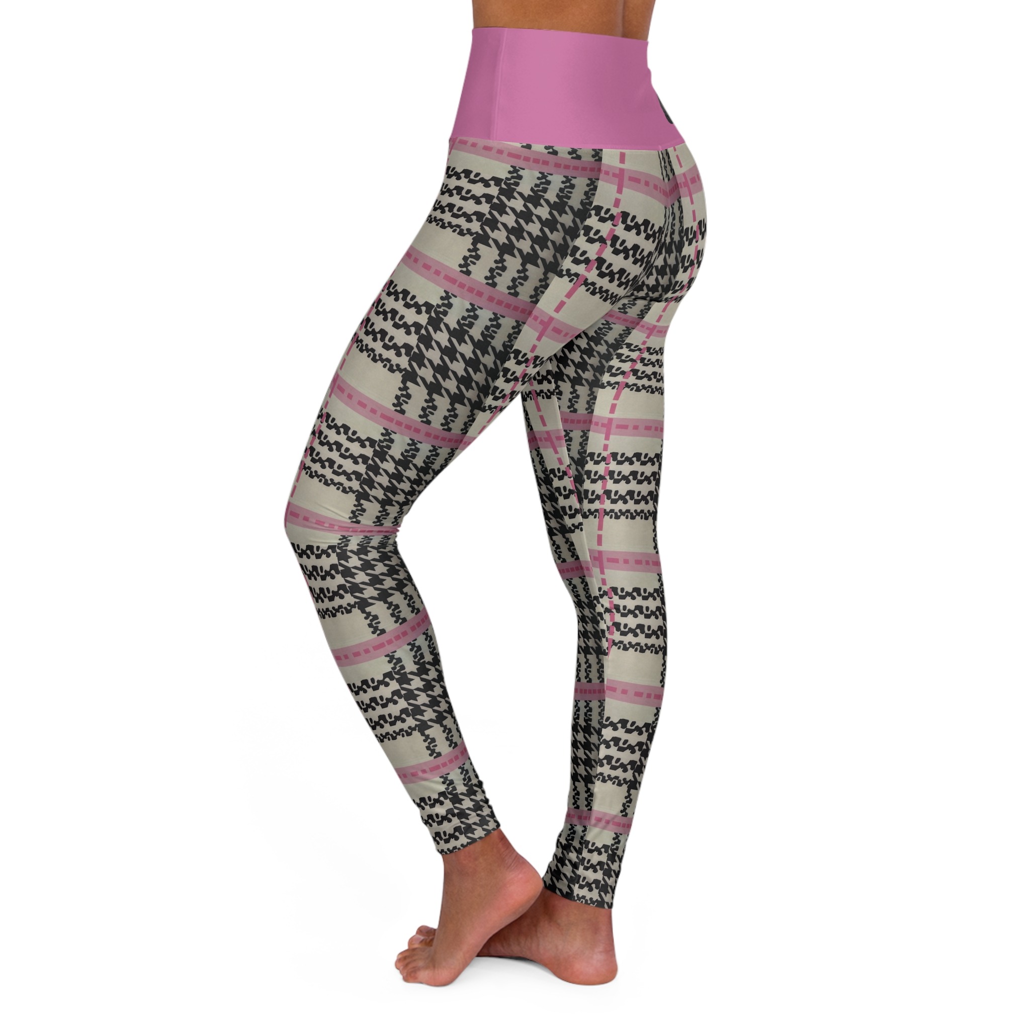 These skinny fitting high waisted yoga leggings in slicksoft pink will take you from office to store run in comfort and style. They are fully customized with an all-over print that adds an instant pop to any wardrobe.