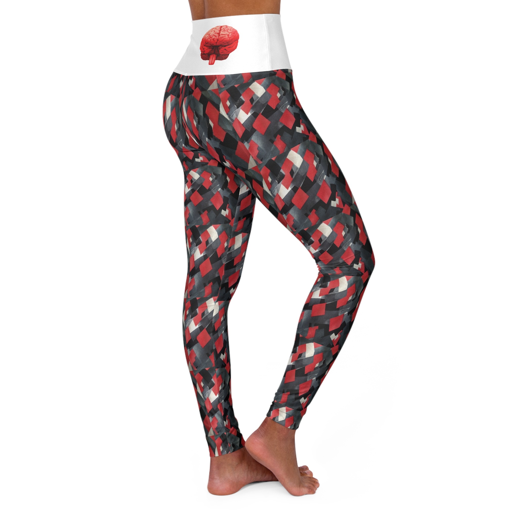 These skinny fitting high waisted yoga leggings in slick brick white will take you from office to store run in comfort and style. They are fully customizable with an all-over print that adds an instant pop to any wardrobe.