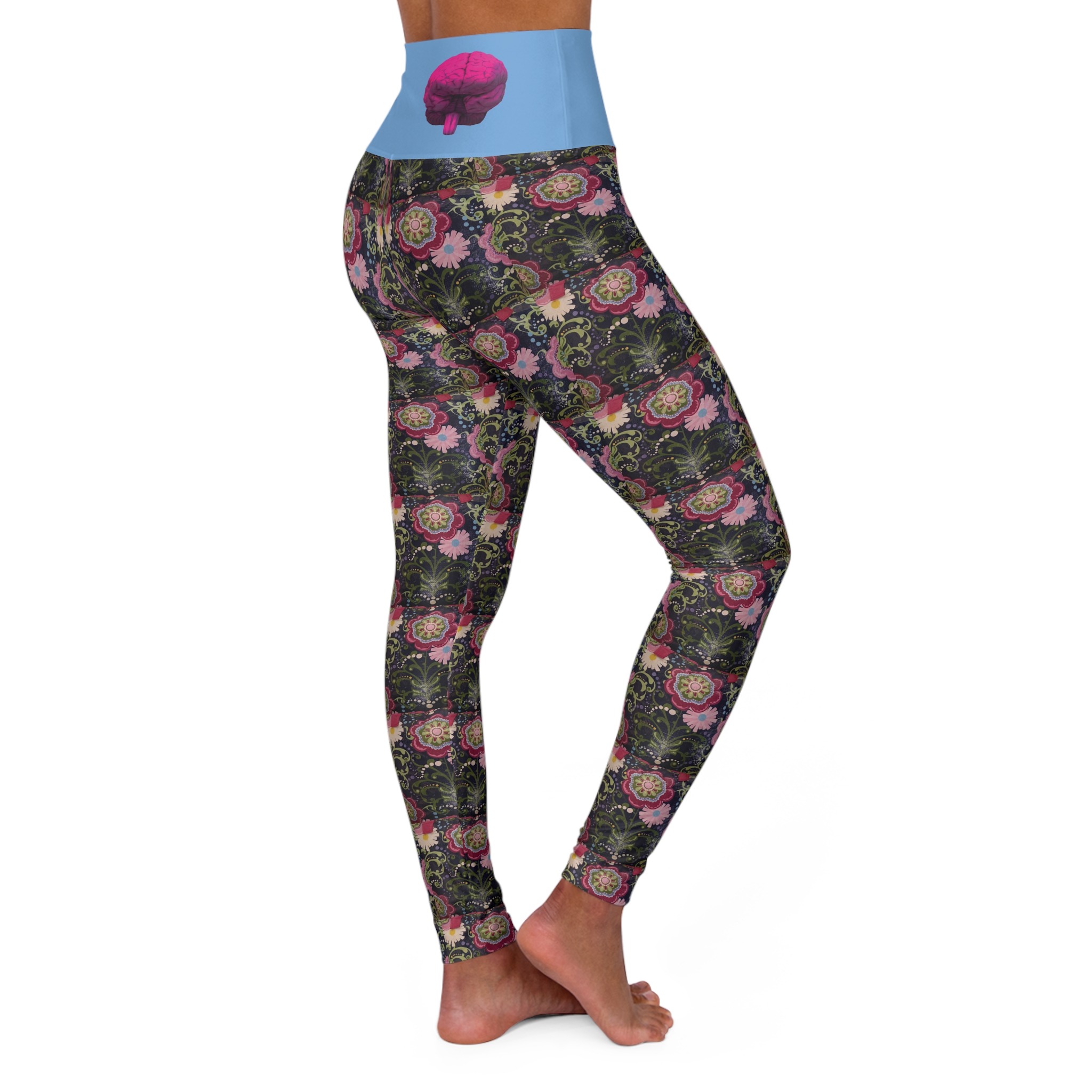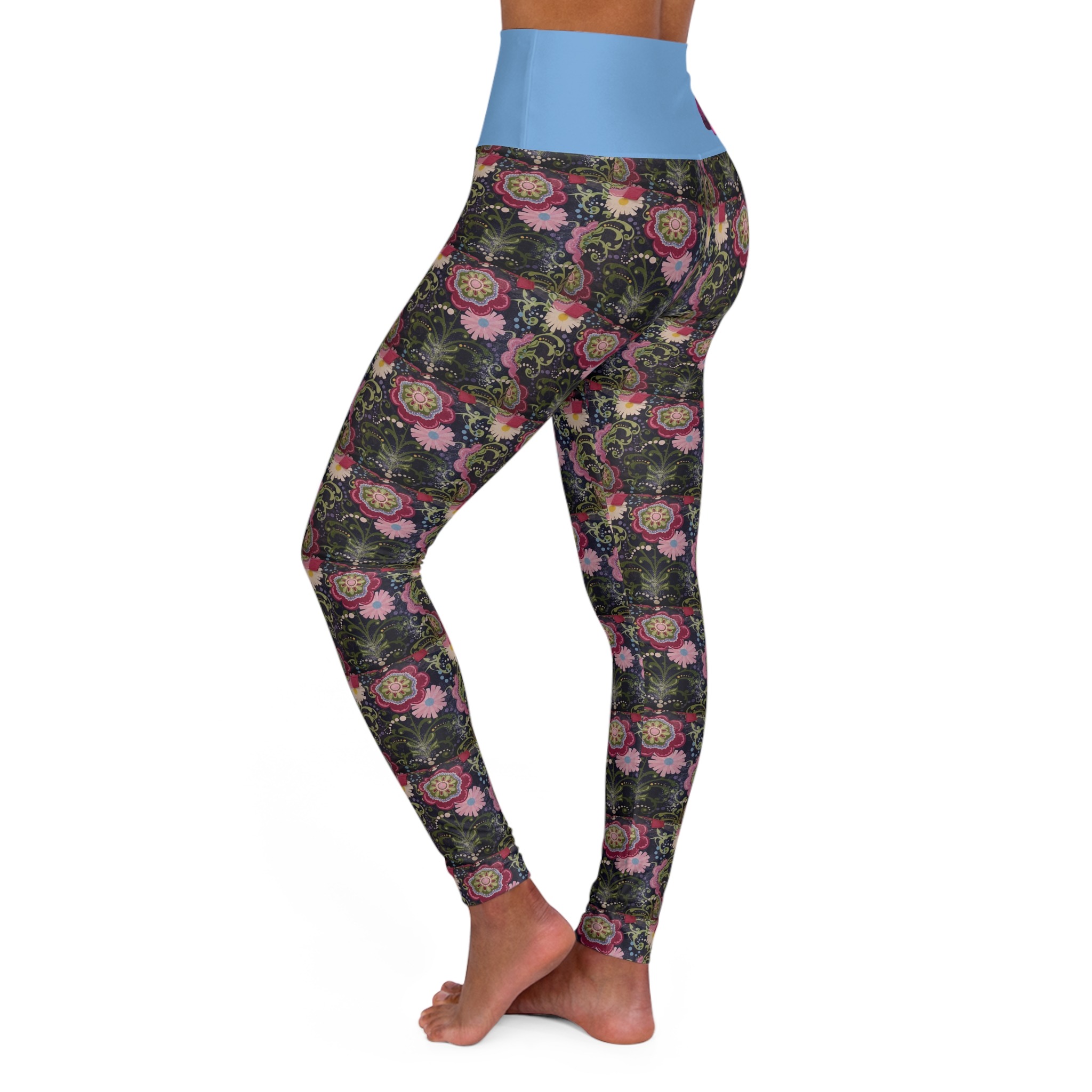These skinny fitting high waisted yoga leggings in slicksoft blue will take you from office to store run in comfort and style. They are fully customized with an all-over print that adds an instant pop to any wardrobe.