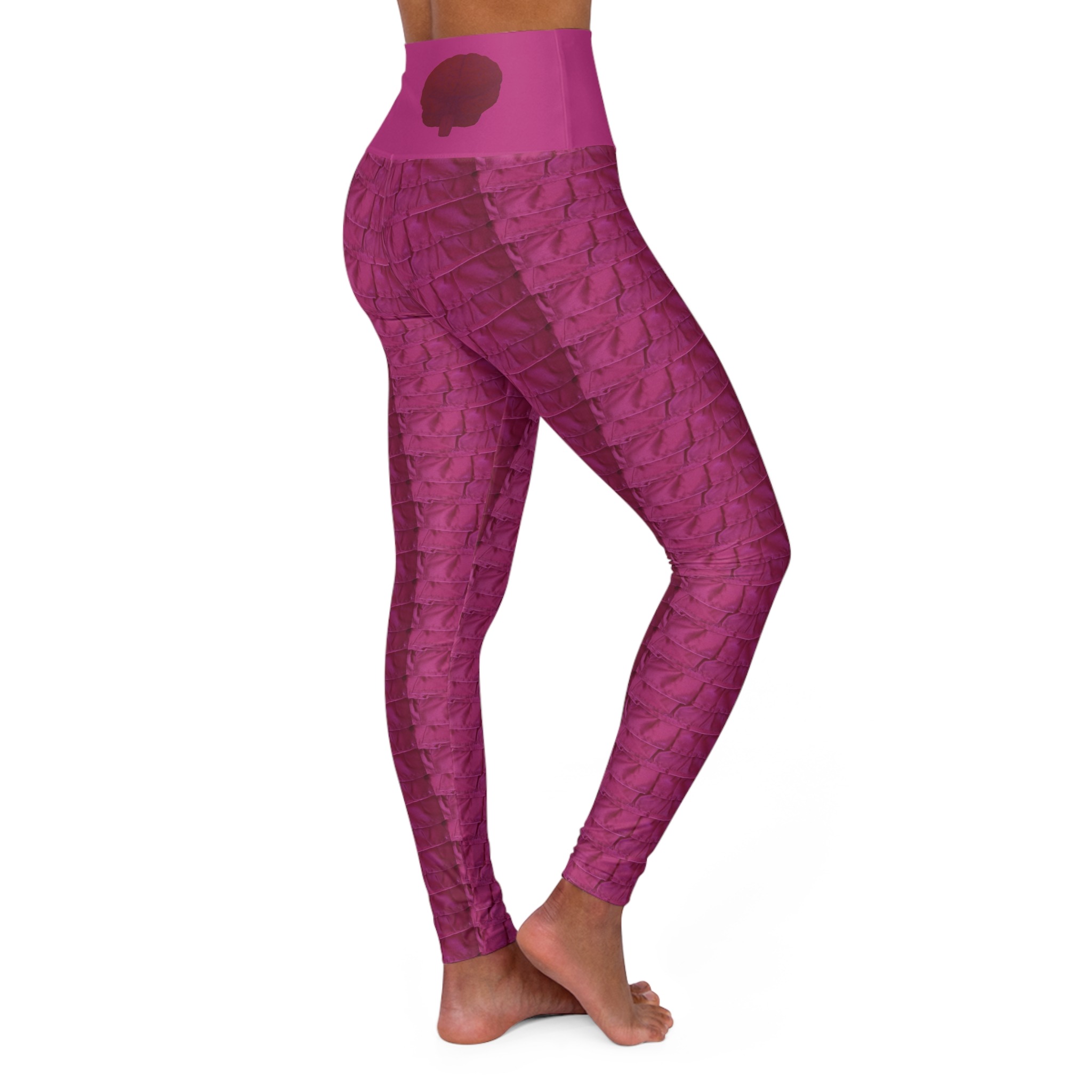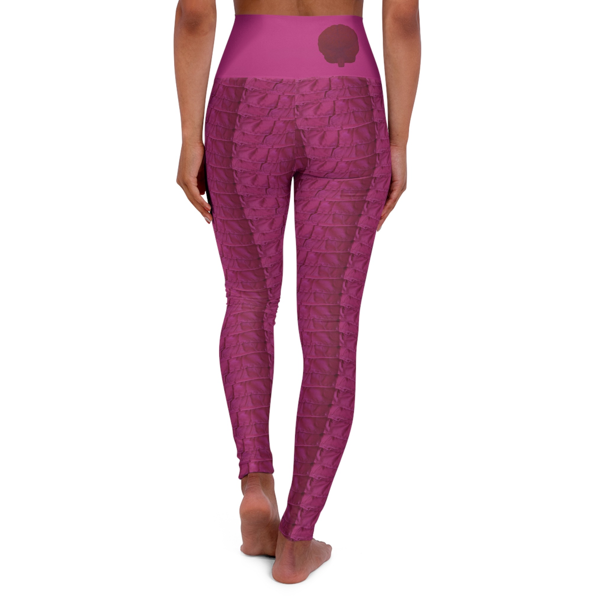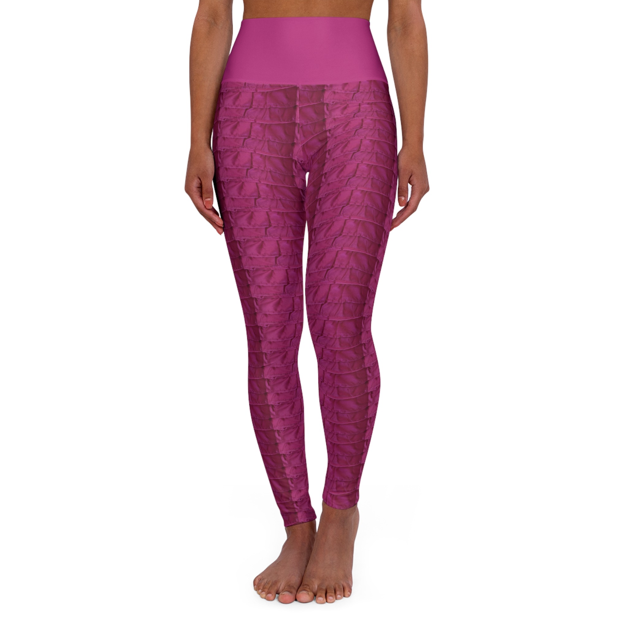 These skinny fitting high waisted yoga leggings in slickpink will take you from office to store run in comfort and style. They are fully customized with an all-over print that adds an instant pop to any wardrobe.