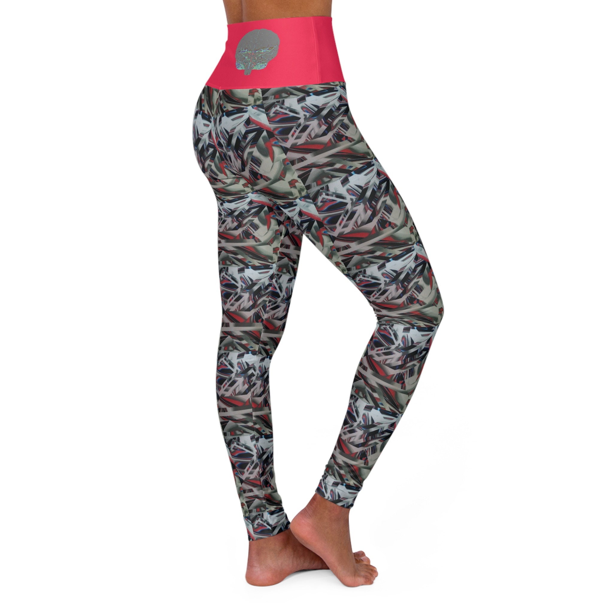 These skinny fitting high waisted yoga leggings in slickhot pink will take you from office to store run in comfort and style. They are fully customized with our BOB Grey Abstract all-over print that adds an instant pop to any wardrobe.