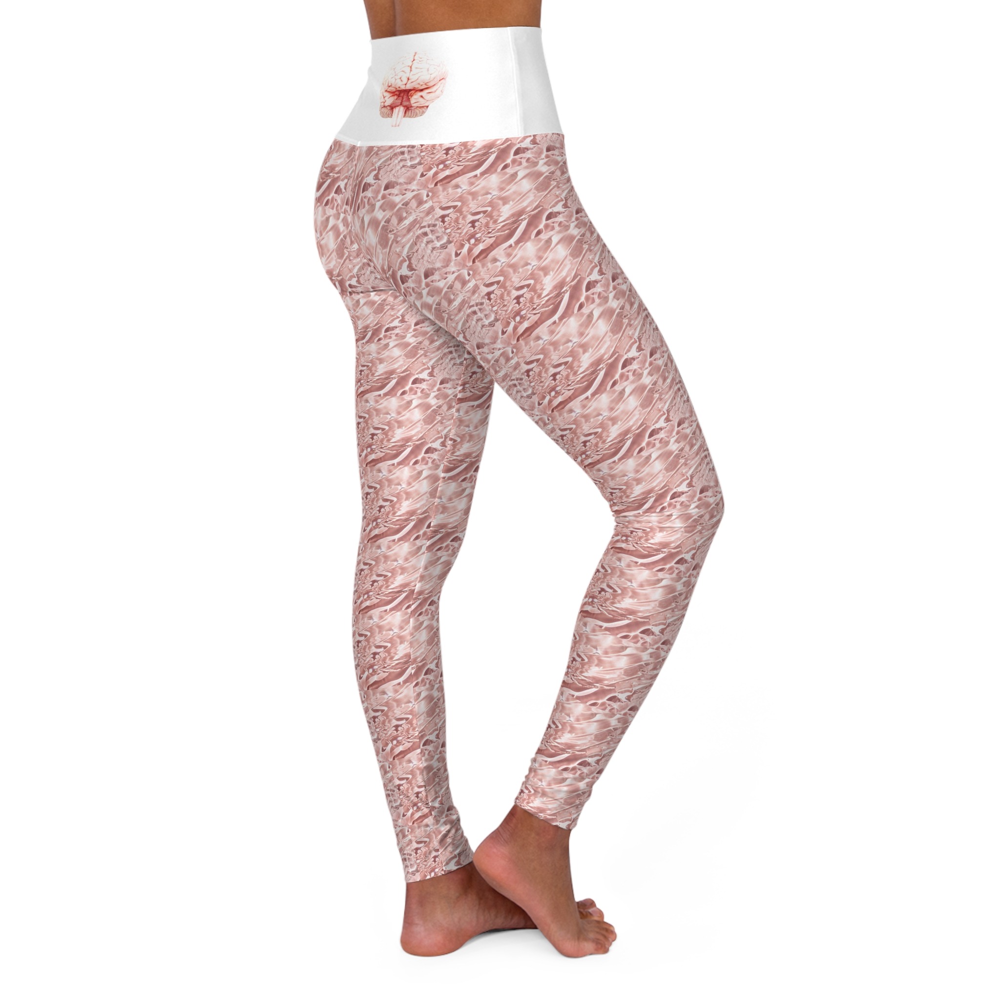 These skinny fitting high waisted yoga leggings in slick brick white will take you from office to store run in comfort and style. They are fully customized with an all-over print that adds an instant pop to any wardrobe.