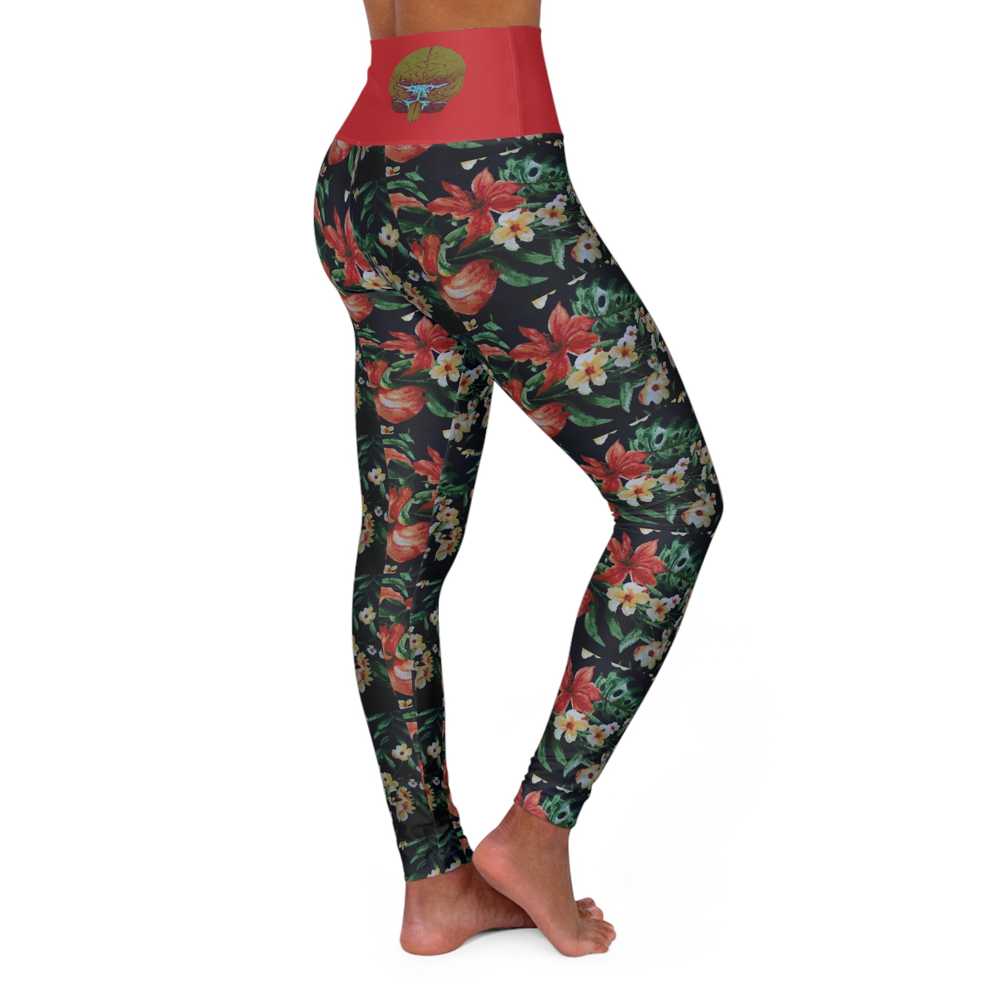 These skinny fitting high waisted yoga leggings in slick brick red will take you from office to store run in comfort and style. They are fully customized with an all-over print that adds an instant pop to any wardrobe.