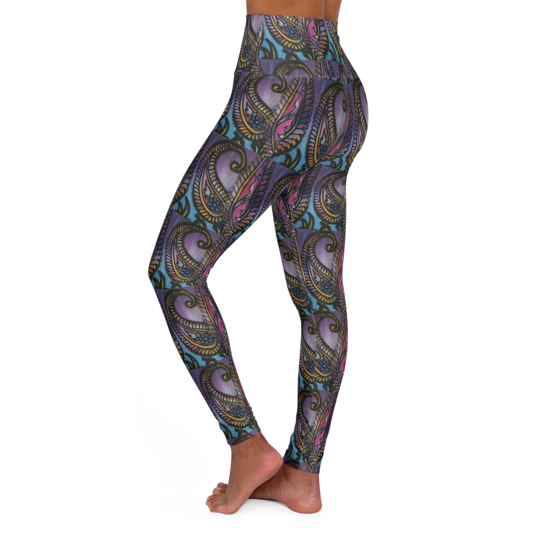 These skinny fitting high waisted yoga leggings will take you from office to store run in comfort and style. They are fully customized with an all-over print that adds an instant pop to any wardrobe.