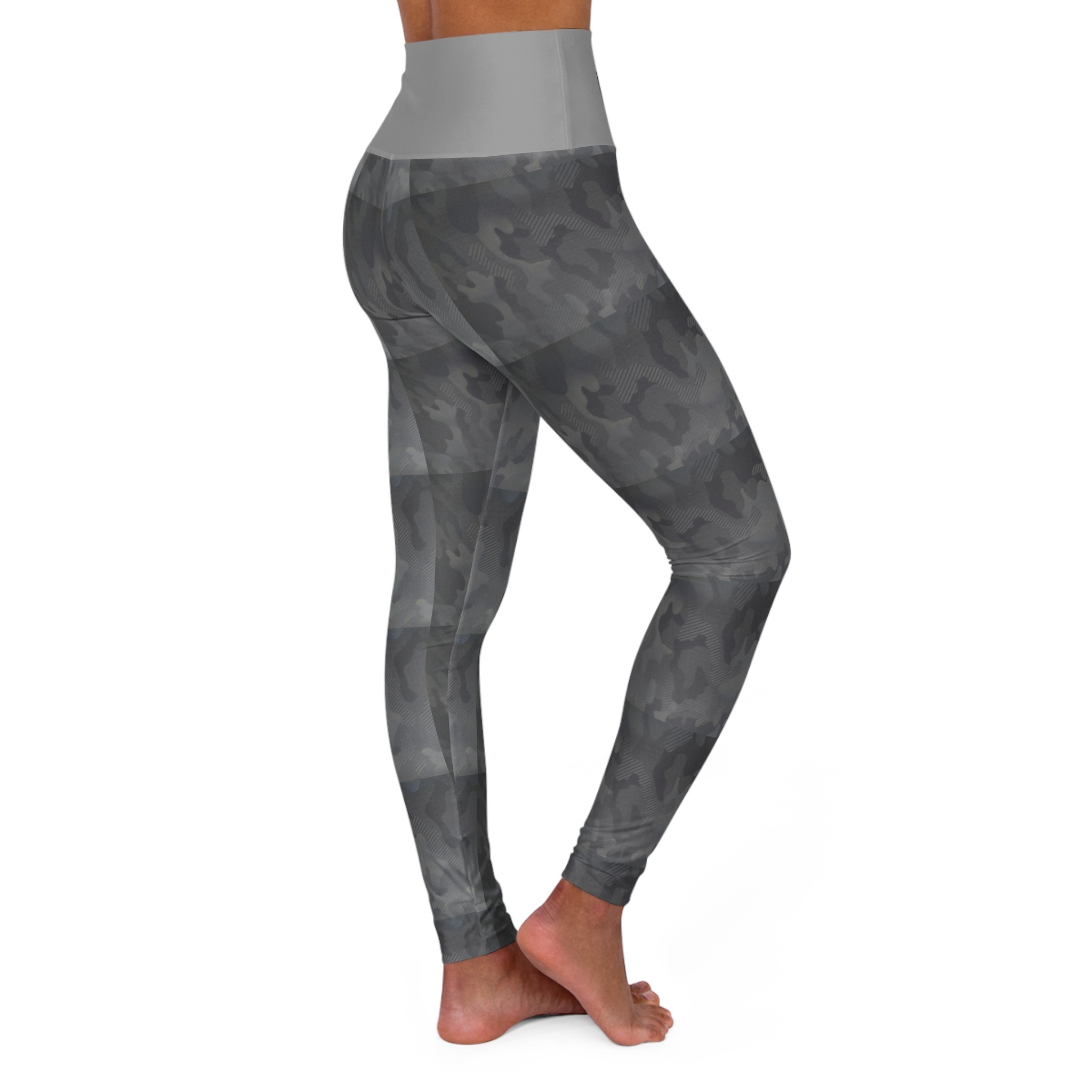These skinny fitting high waisted yoga leggings in slicktip grey will take you from office to store run in comfort and style. They are fully customized with an all-over print that adds an instant pop to any wardrobe.
