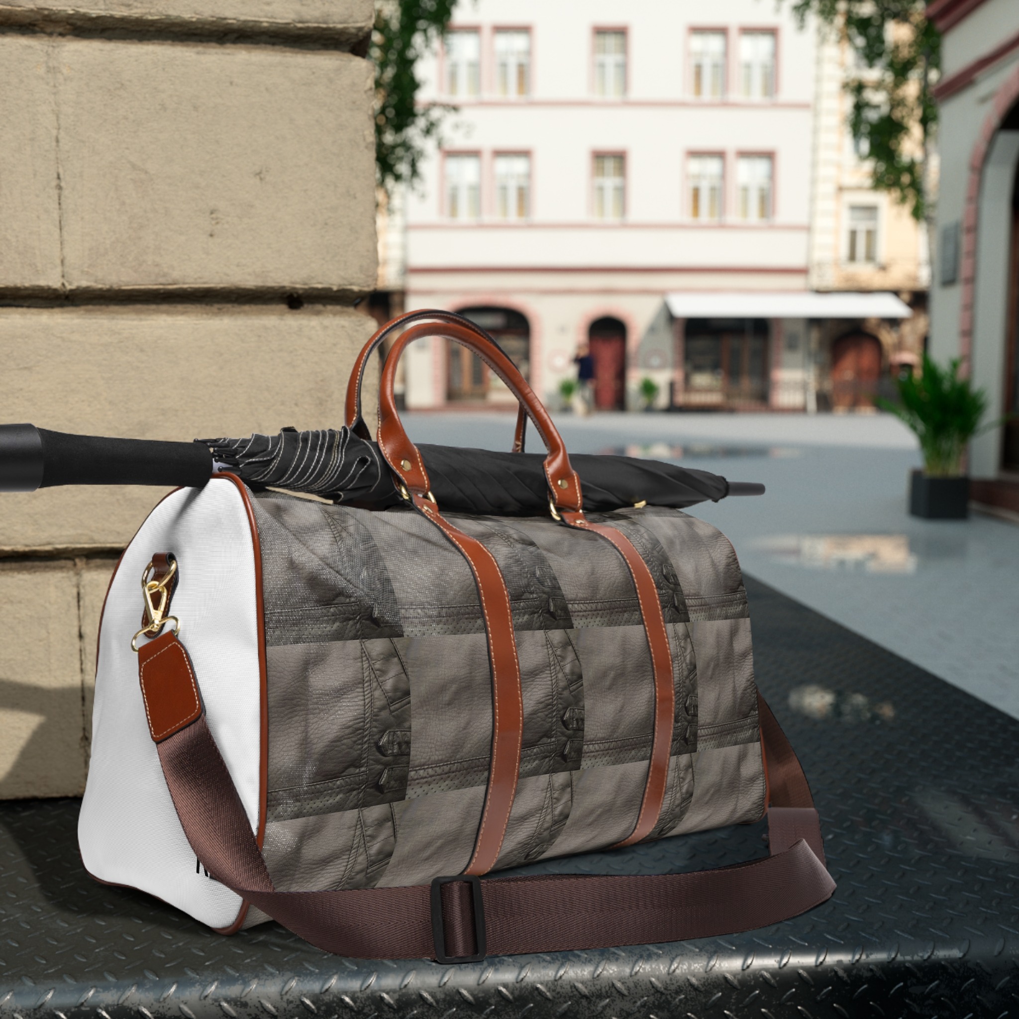 .: Brown PU leather handles and an adjustable shoulder strap
