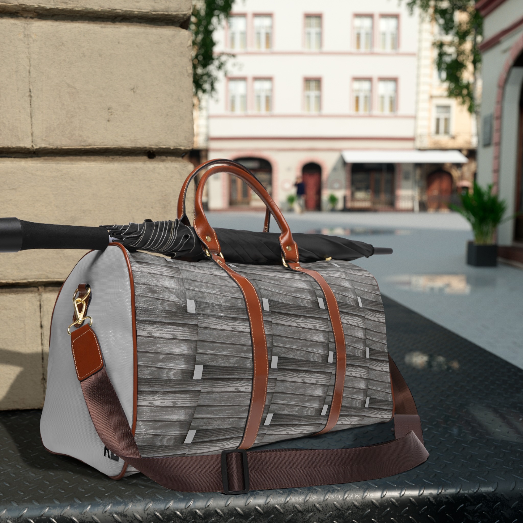 .: Brown PU leather handles and an adjustable shoulder strap
