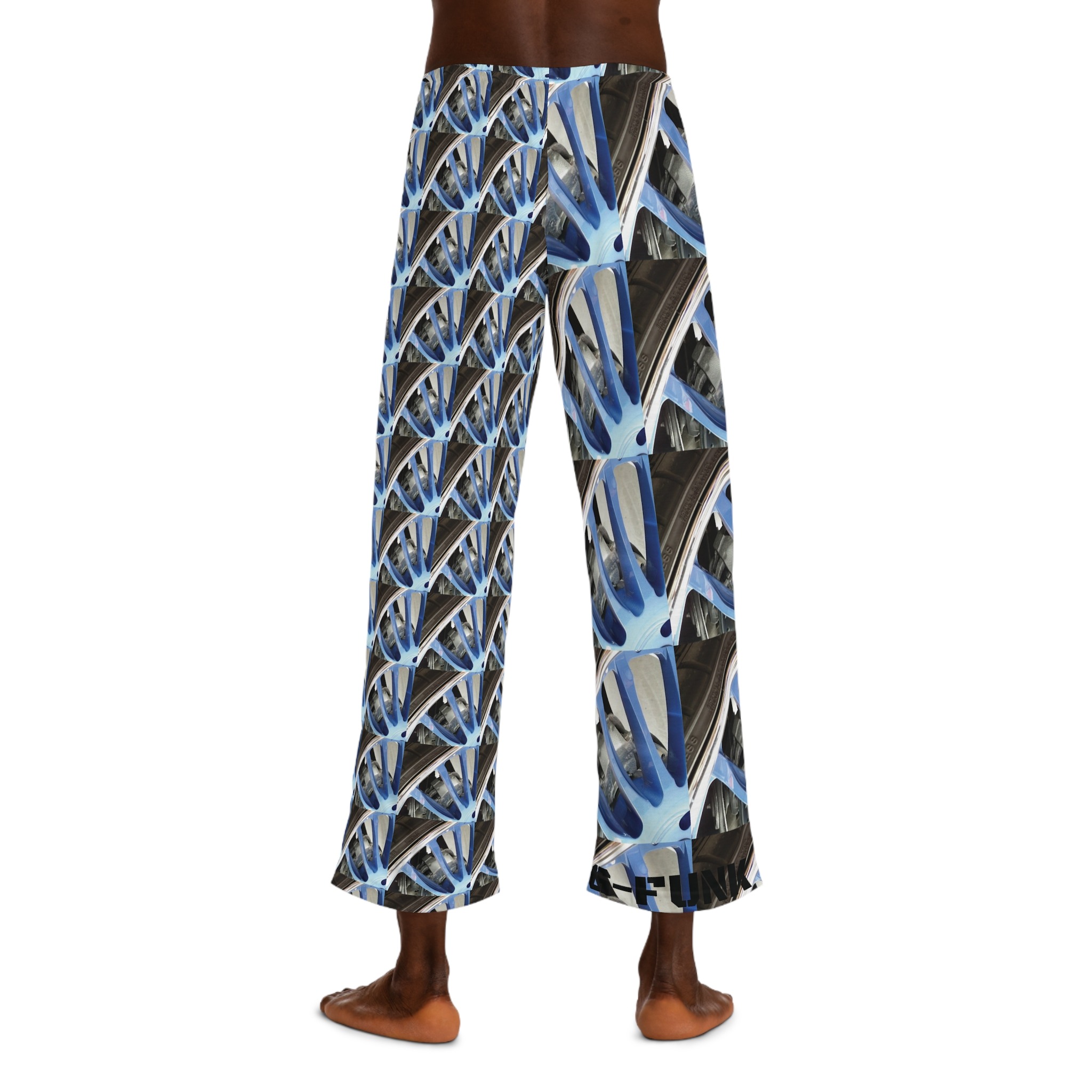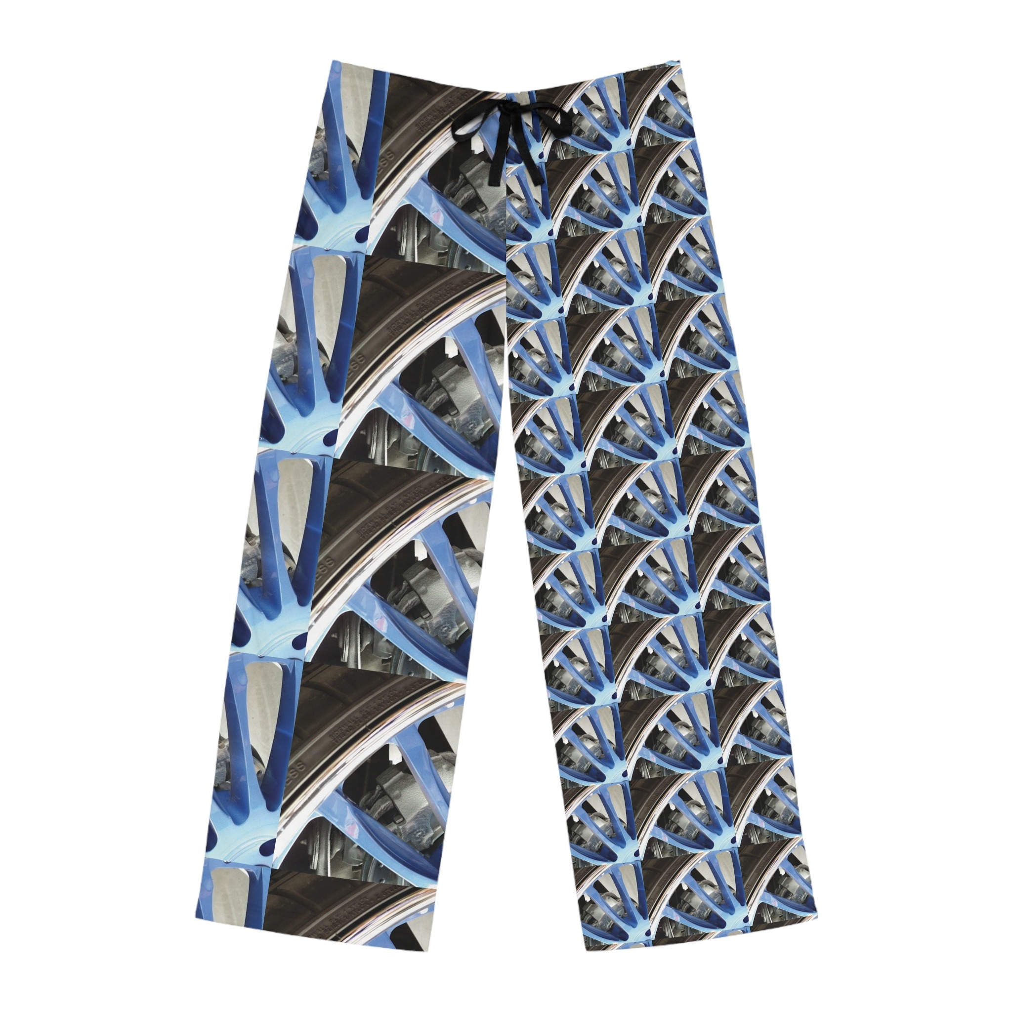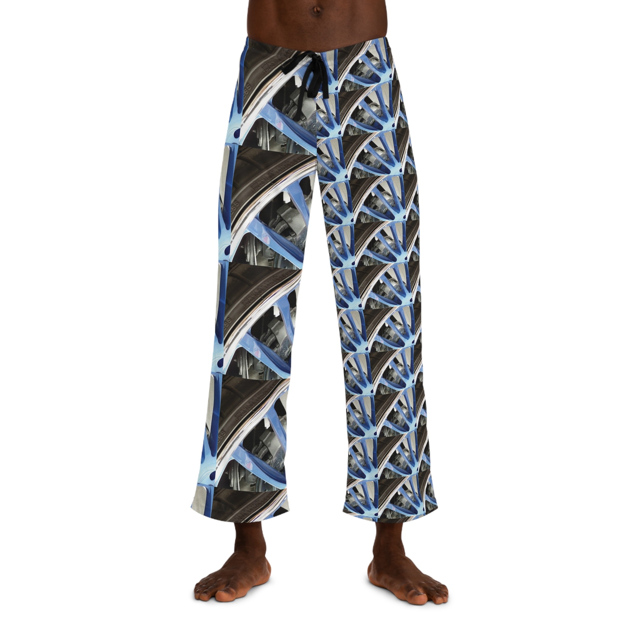 These lightweight pajama pants turn the everyday into something a little more electric. A repeating wheel-and-spoke motif in cool blue and steel tones wraps the fabric, creating a rhythm that moves with you whether you’re winding down after a long day or lounging with coffee at dawn. The relaxed cut and soft polyester jersey keep the print vivid while letting the pants drape easily—they feel breathable and lived-in from the first wear. The drawstring waist and back elastic let you fine-tune the fit, while reinforced seams and neat white topstitching promise they’ll hold up through repeated washes and nights in. Wear them for slow mornings, late-night sketching sessions, or as a statement layer when you want comfort without blending into the background.