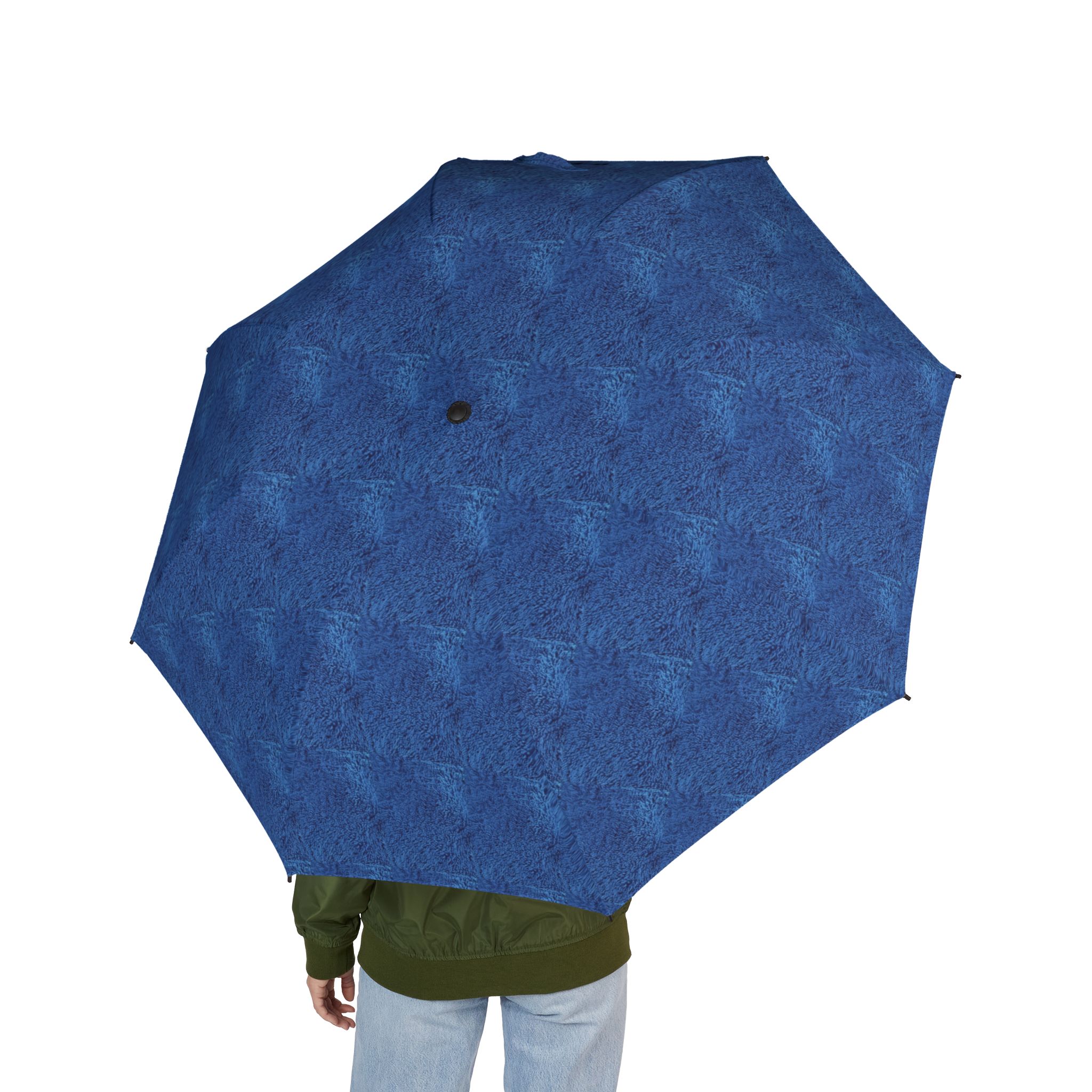 Rainy walks feel less like chores and more like small adventures with this compact foldable umbrella. The deep, painterly beau blue canopy carries a subtle textured look that reads as tailored and calm. A semi-automatic open lets you pop it up with one hand the instant clouds gather, while eight fiber-reinforced ribs hold the shape steady against gusts. The rubber handle sits comfortably in your grip and the matching sleeve—printed with the umbrella’s center motif—keeps it neat in bags. It’s the kind of umbrella you reach for when you want reliable coverage without fuss, and a little quiet style to go with it.