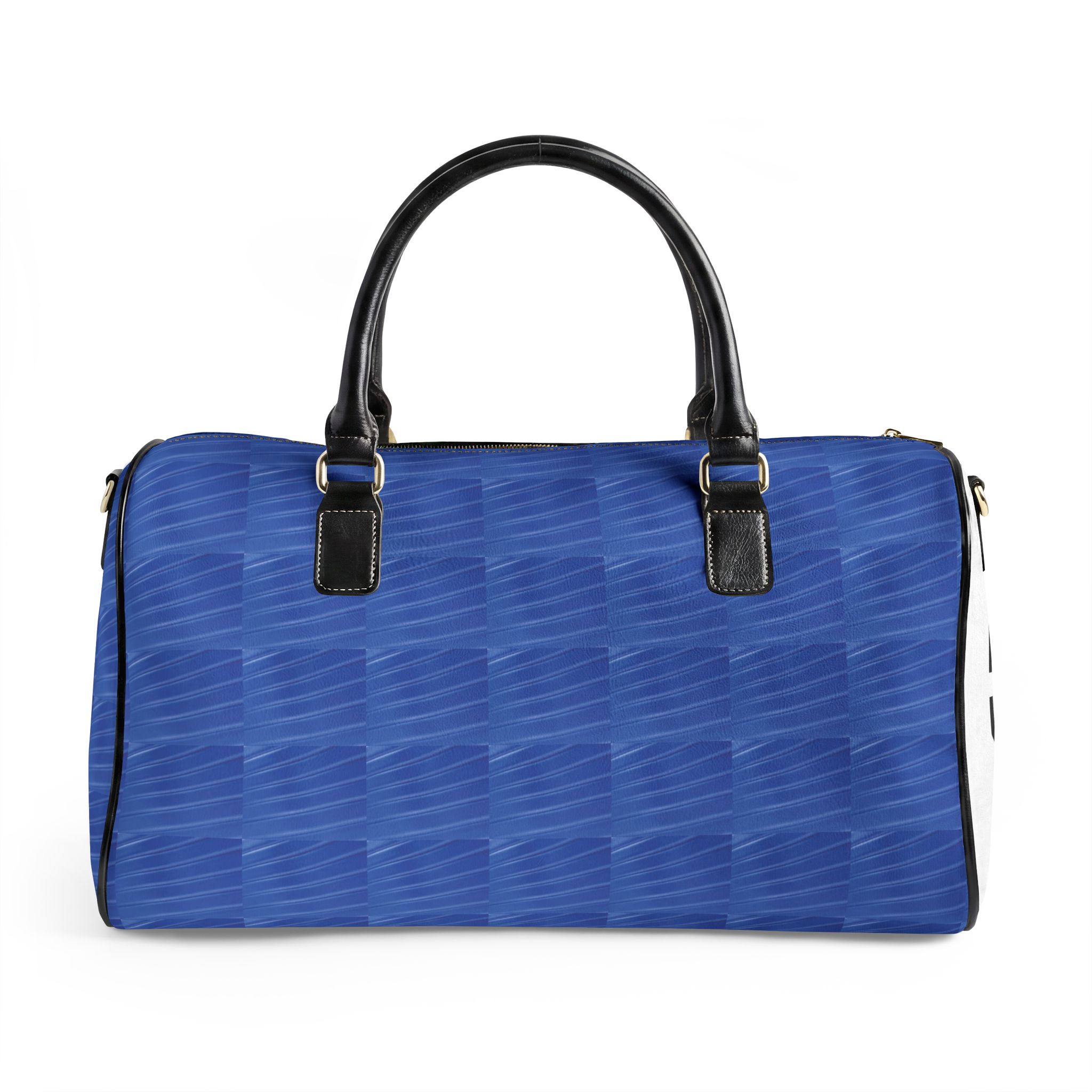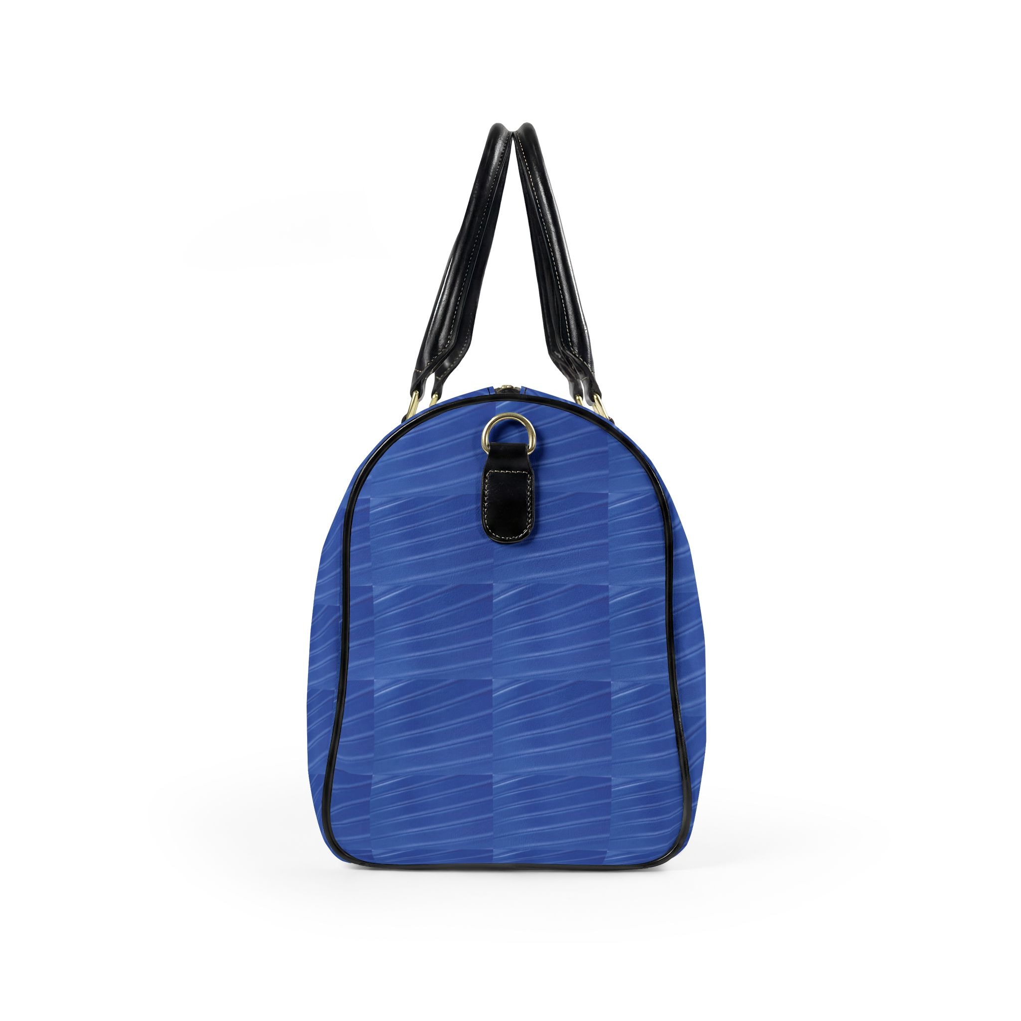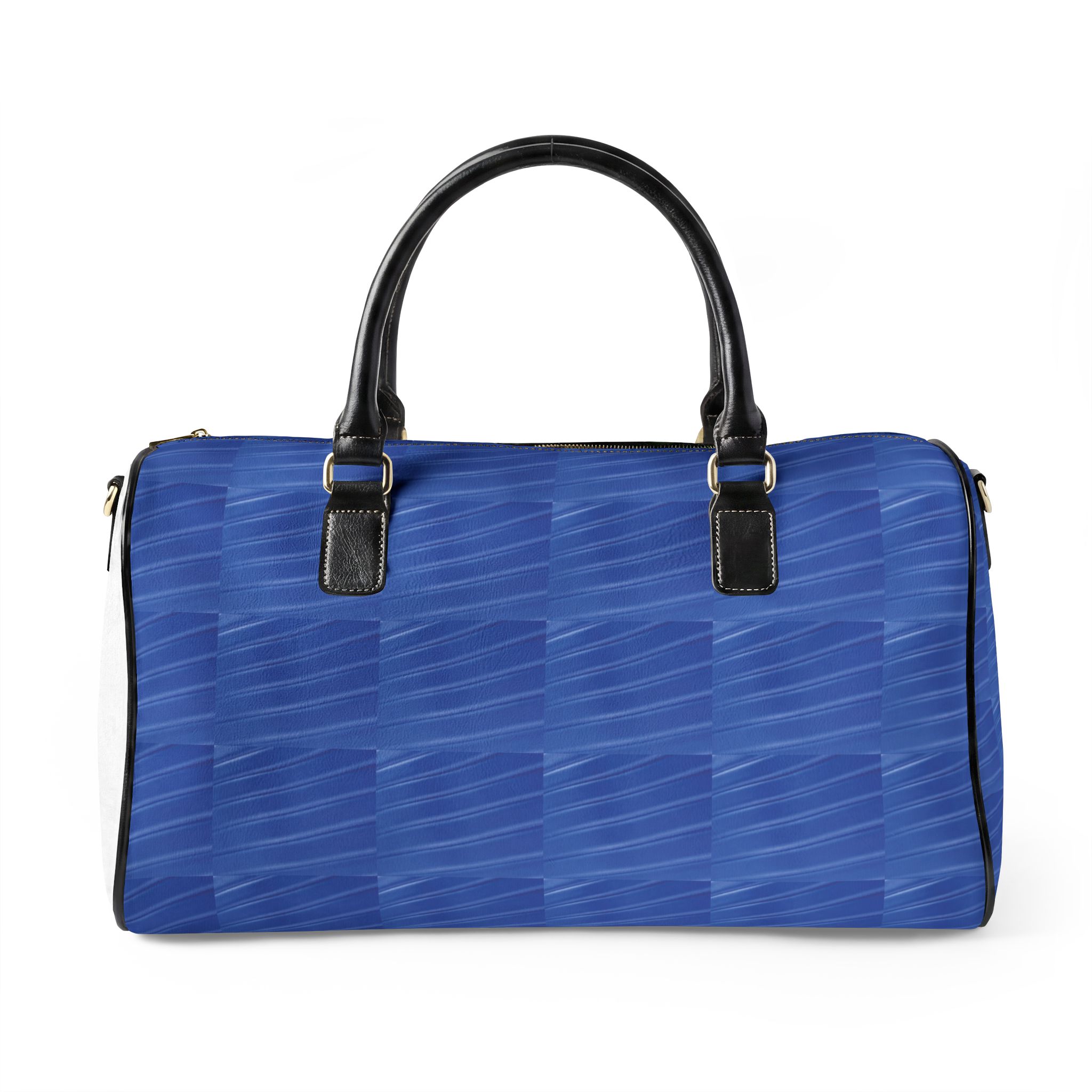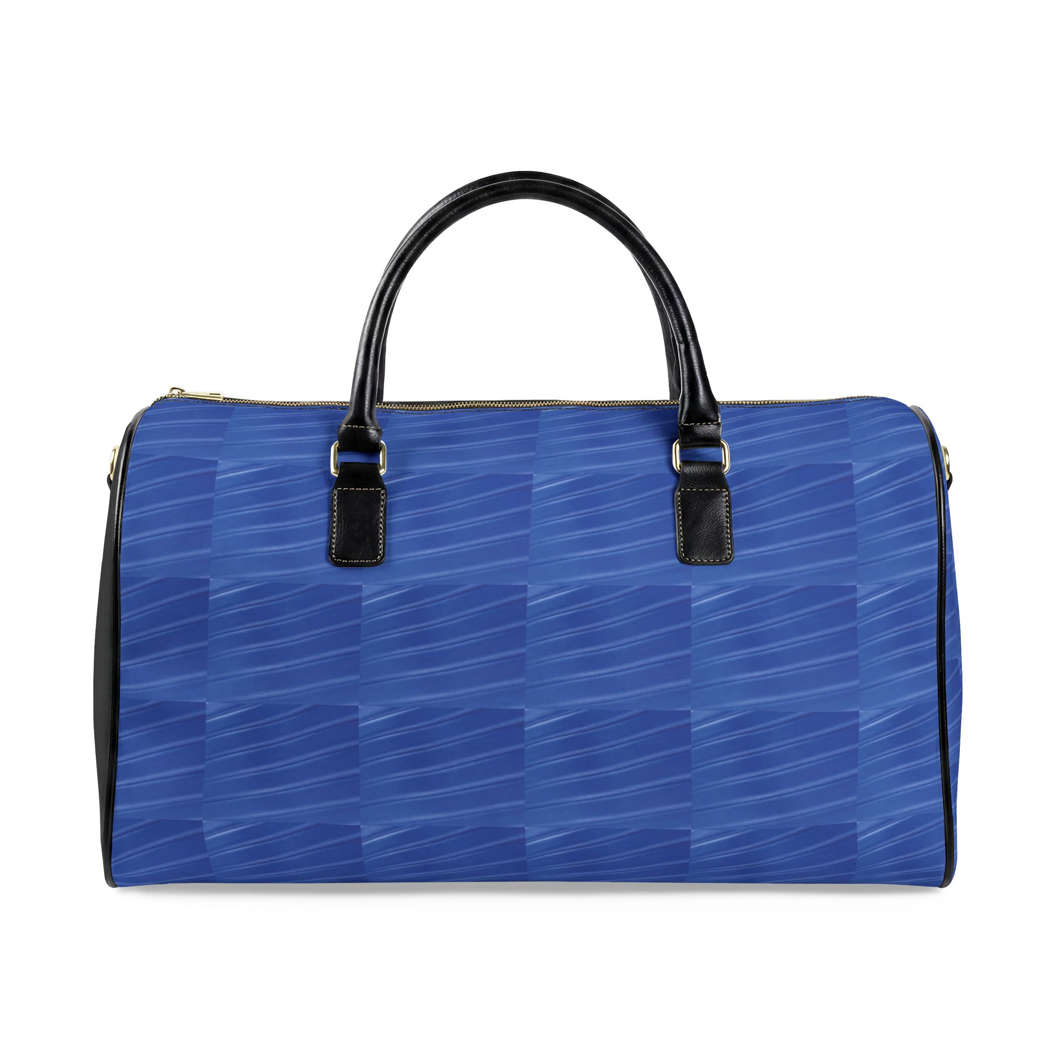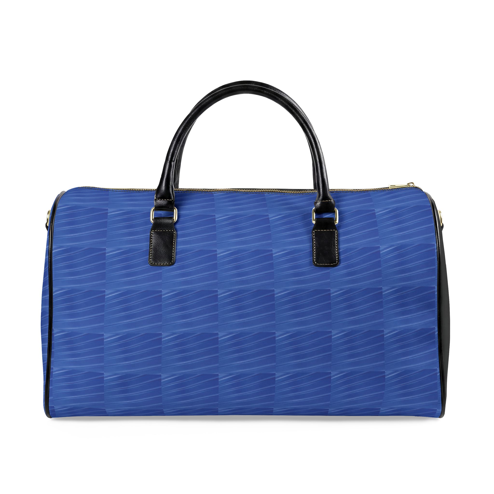A smooth, structured travel bag that brings calm order to weekend escapes and business trips. The rich blue finish carries a subtle geometric texture that reads modern and composed. Inside, a single roomy compartment holds clothing and essentials without fuss; a padded PU top handle and matching binding make hand-carrying comfortable, while a detachable, adjustable shoulder strap with metal clips keeps the bag versatile when you need hands free. Two compact sizes fit lean packing or a slightly larger overnight load, and the durable high-grade PU leather wipes clean and keeps the silhouette crisp over time. This bag slips easily into the rhythm of short trips — neat, quiet, and consciously styled.