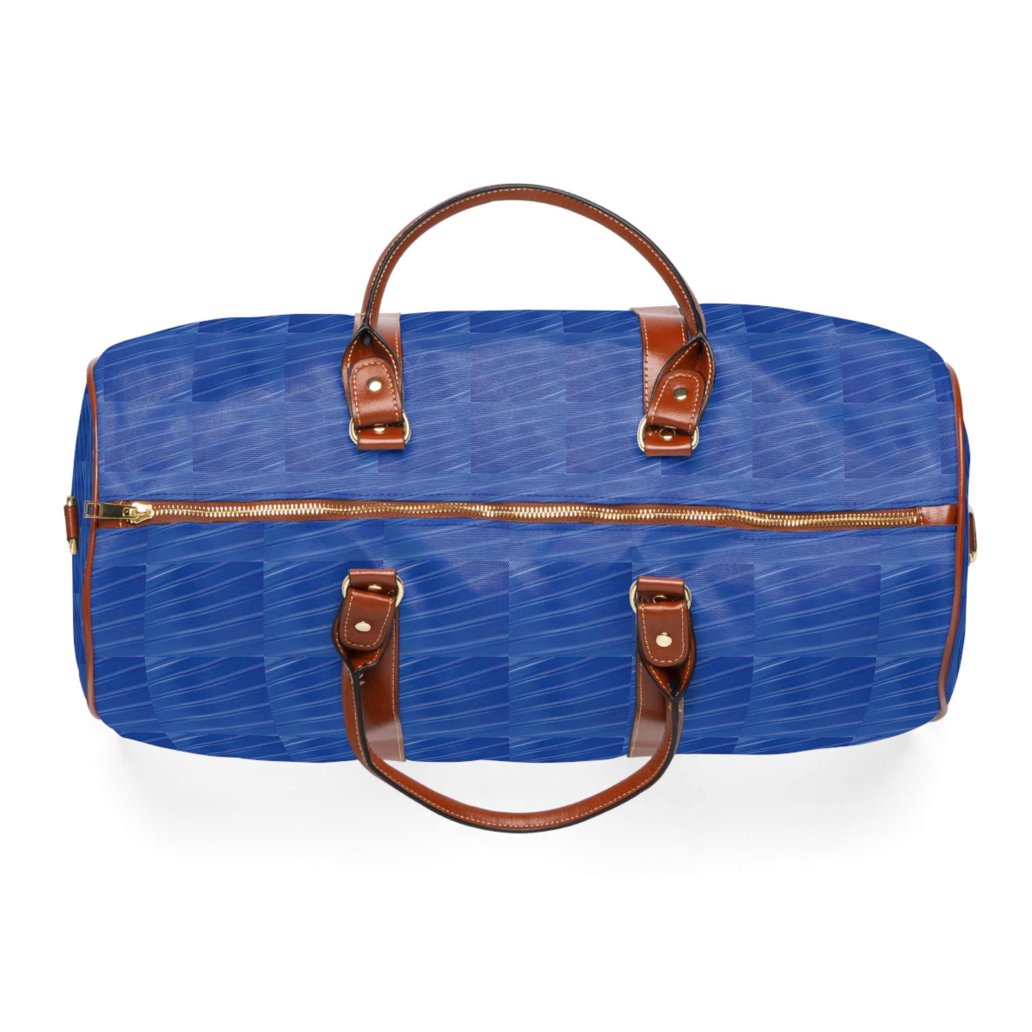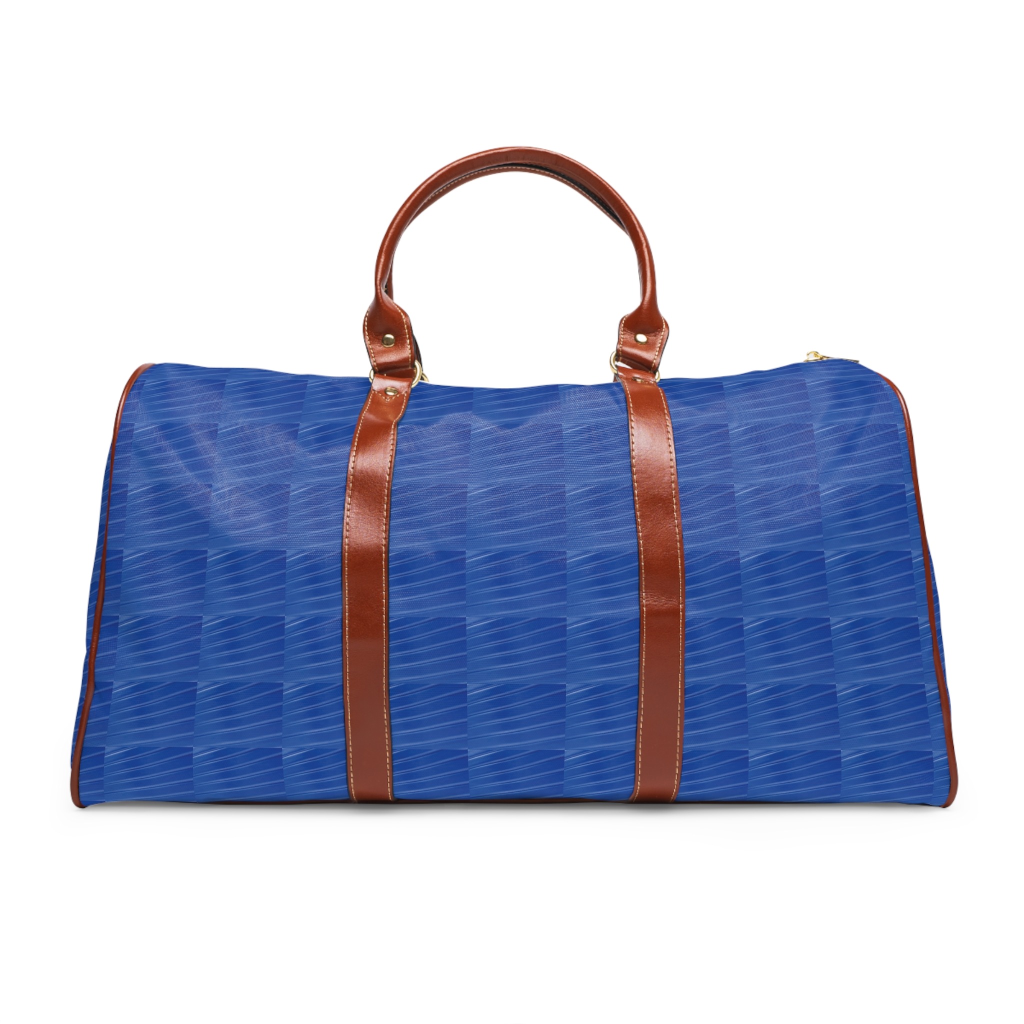 This travel bag brings together dependability and a bright, modern look so your journeys feel lighter and more confident. Crafted from high-grade nylon with a waterproof finish, it stands up to sudden rain and bustling transit while staying remarkably lightweight. The rich blue all-over print adds an energetic, contemporary edge, while brown PU leather handles and an adjustable shoulder strap ground the design with warm, wearable detail. Inside, a single open pocket and a polyester lining keep essentials organized. A gold-colored zipper and neat binding complete the thoughtful build — durable, travel-ready, and made to move with you.