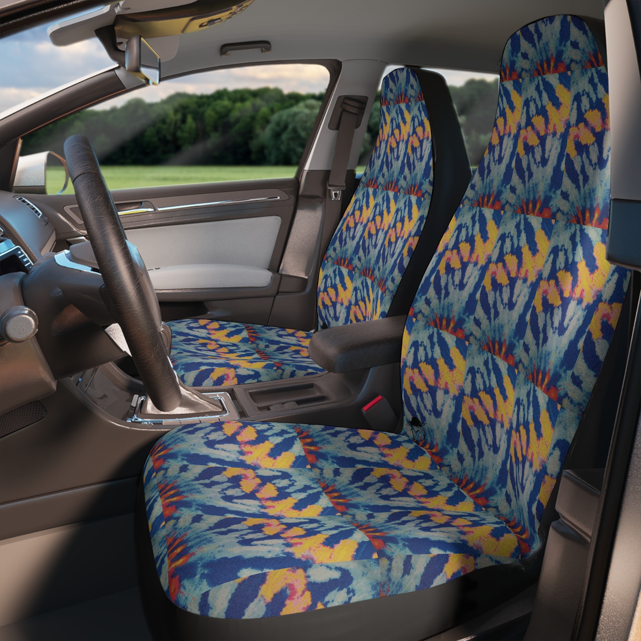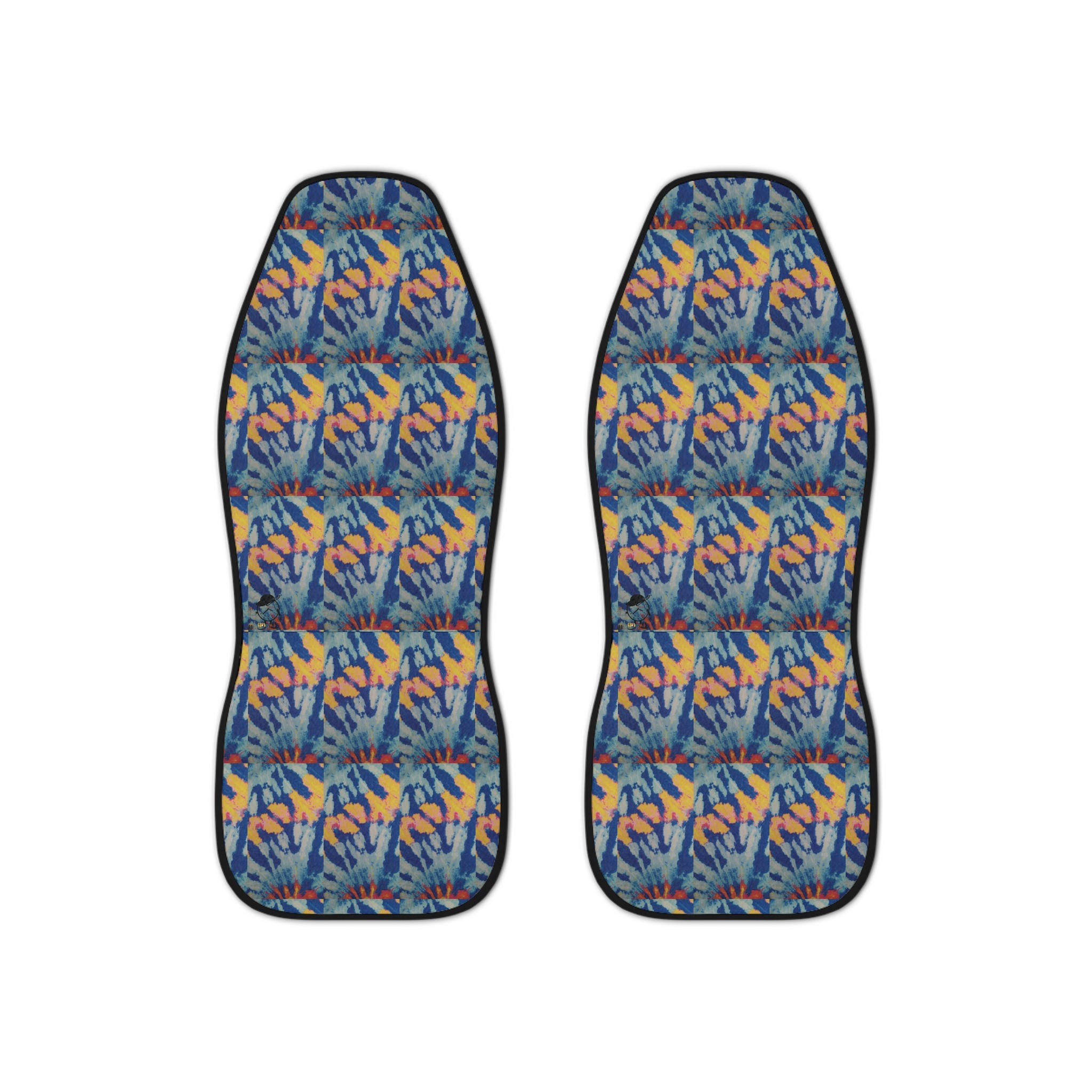 Add a custom spin on any car with these personalized seat covers. Made with top-tier, thick polyester fabric for long-lasting durability. These seat covers come with an elastic fastening system that delivers a secure, snug fit that is tool-free and easy to install. Both covers feature identical designs.