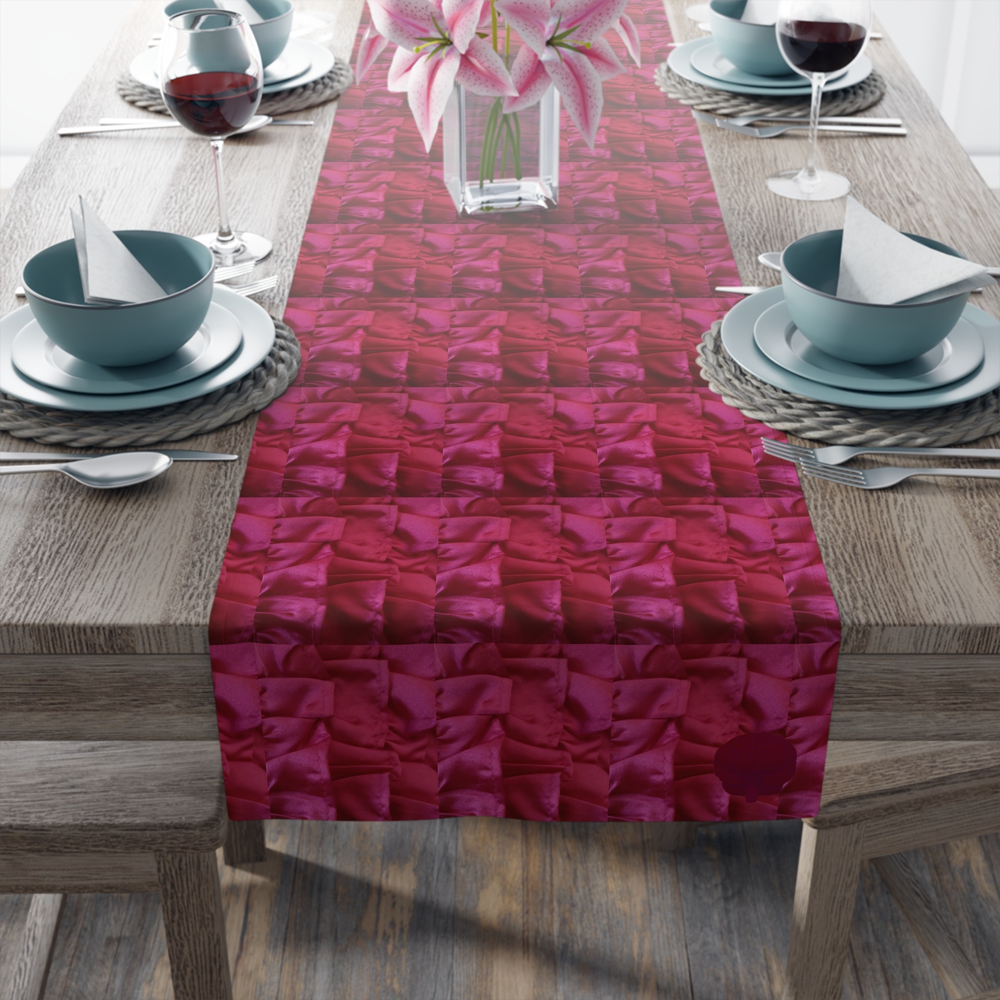 In order to make a kitchen setting look like a picturesque catalog entry, a stylish runner is a must-have. This table runner comes in either cotton twill or polyester.