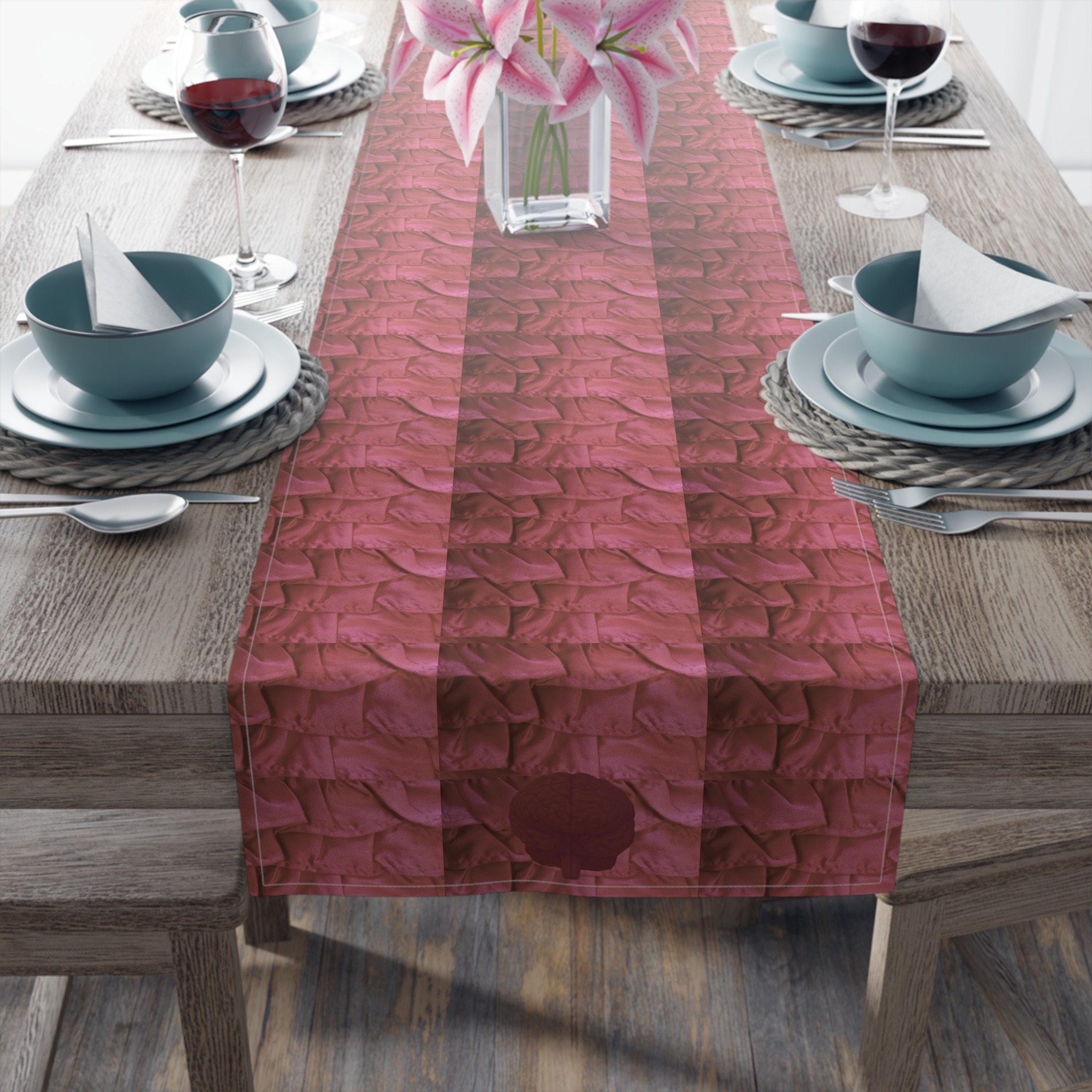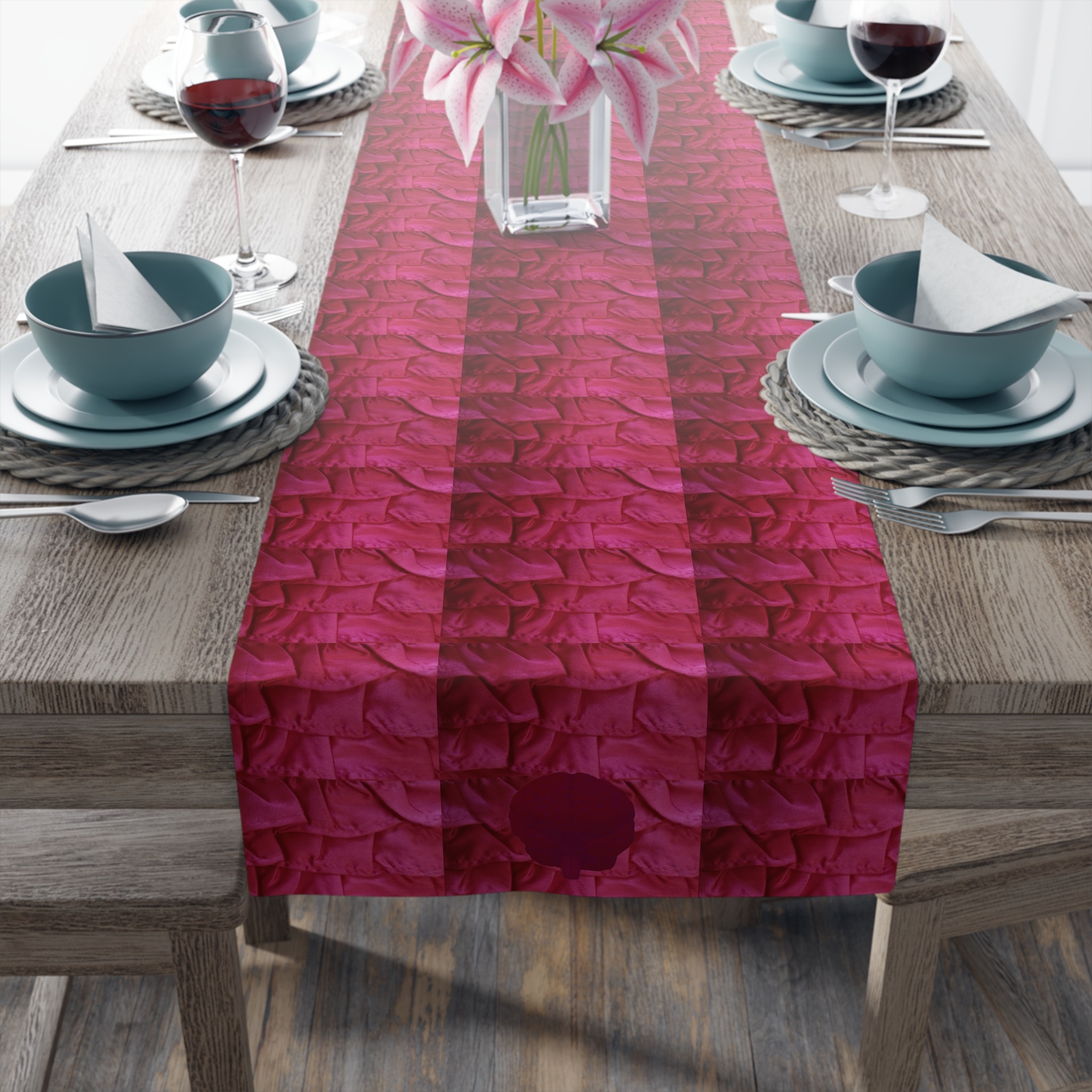 In order to make a kitchen setting look like a picturesque catalog entry, a stylish runner is a must-have. This table runner comes in either cotton twill or polyester.