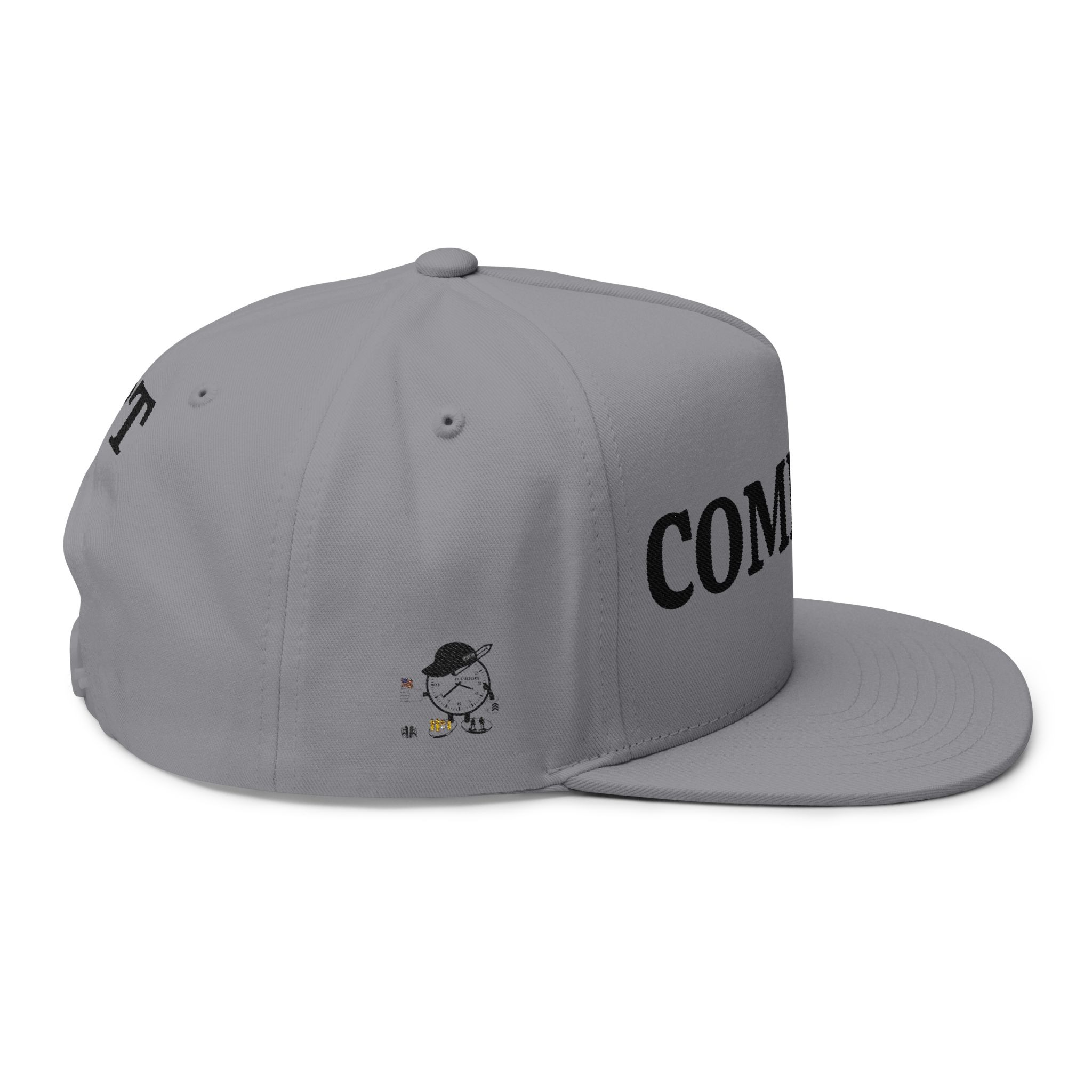 This flat-bill cap carries an old-school street vibe with clean, confident embroidery across the front and a compact, stitched logo at the back. The five-panel, high-profile silhouette holds its shape and gives the embroidered lettering room to breathe. The cotton twill has a lived-in texture that softens over time, while the green undervisor and matching sewn eyelets add subtle, considered details. Wear it on city walks, to weekend shows, or whenever you want a low-key statement that reads bold without shouting. The adjustable snapback ensures a comfortable fit for most head sizes, and the structured crown keeps the cap looking sharp through everyday wear.