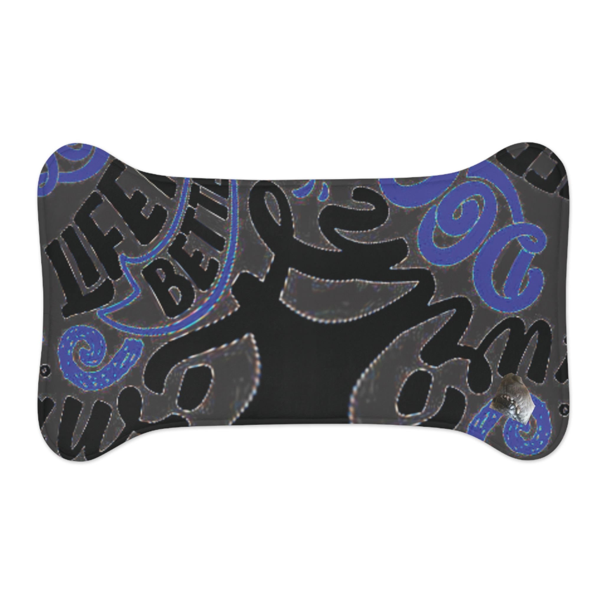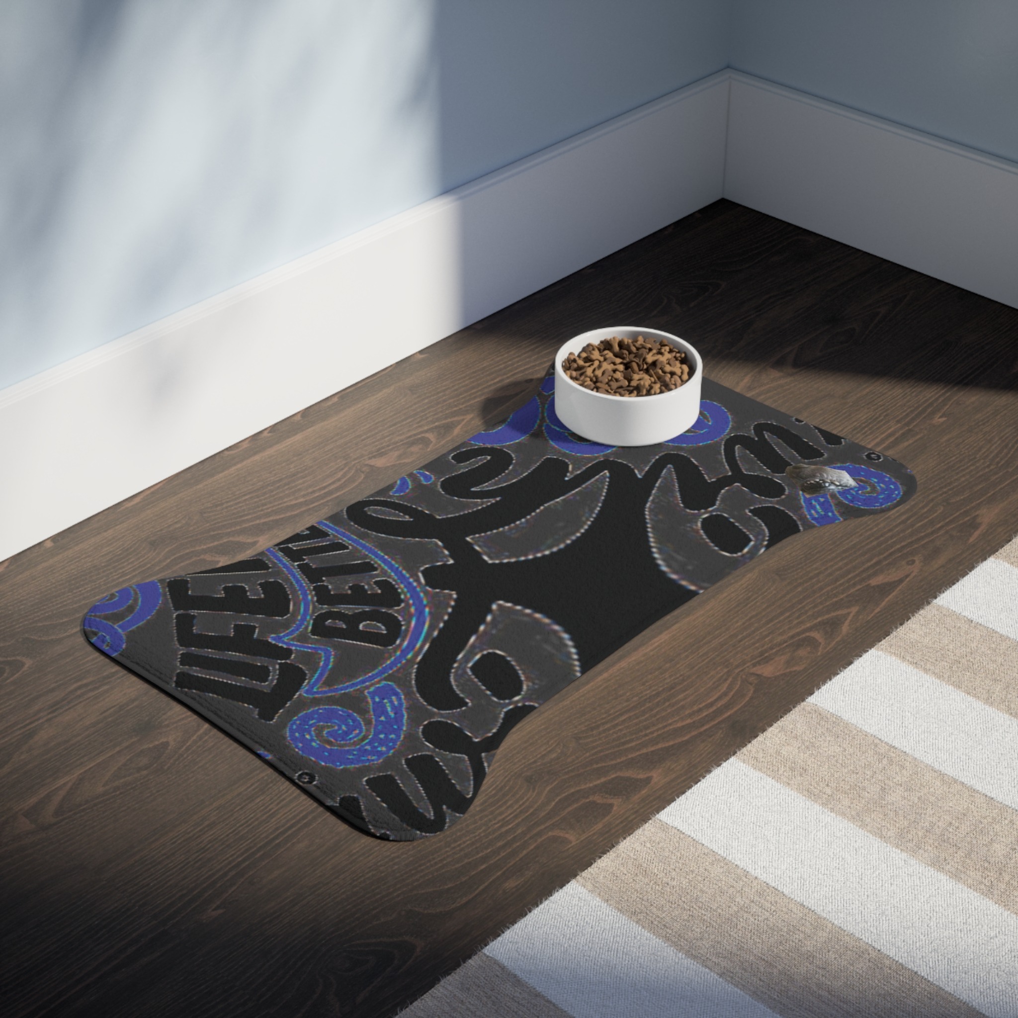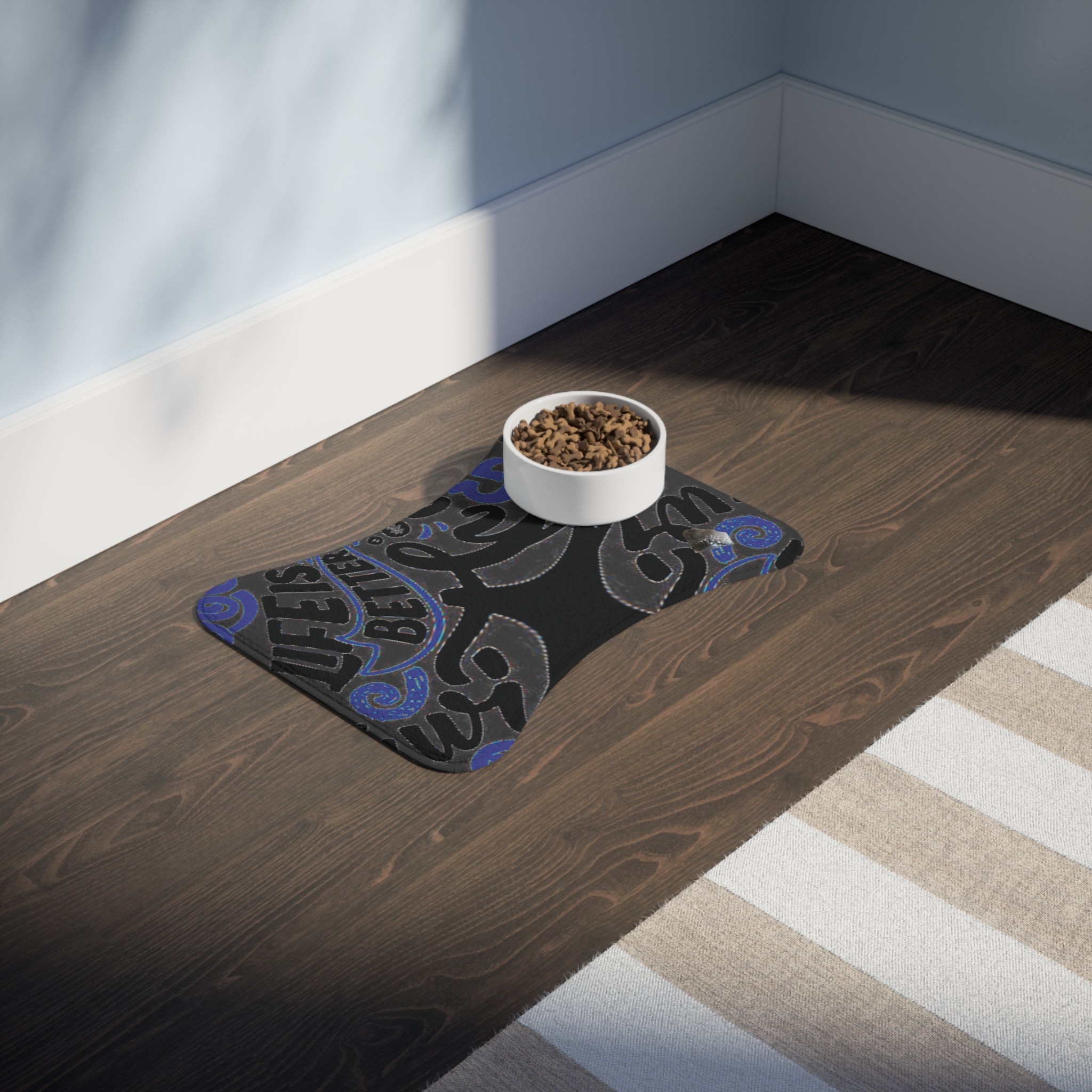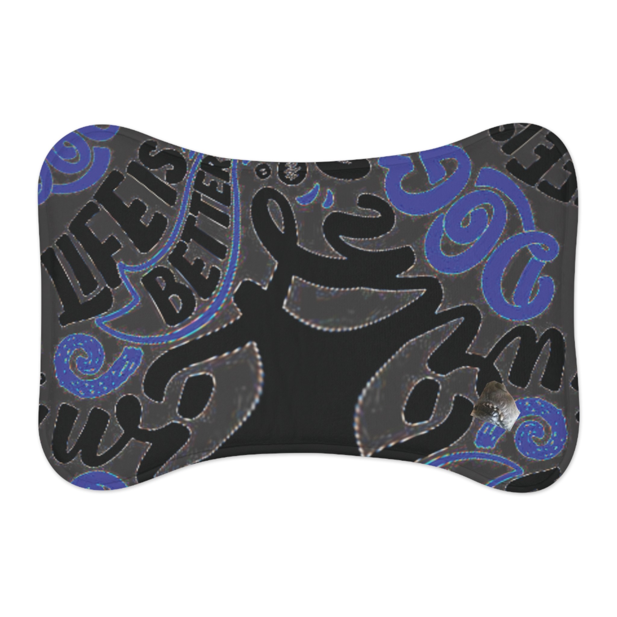 A soft, absorbent feeding mat that brings calm order to mealtime. The plush polyester surface wicks spills while the memory foam core traps stray kibble and moisture, and the anti-slip backing keeps everything steady even when your pup gets excited. The low-profile, one-sided print shows a playful, hand-drawn motif in deep charcoal and indigo that hides stains and adds a subtle, modern touch to your kitchen or mudroom. Lightweight and quick-drying, it slips under bowls and stays put through every enthusiastic nosh session.