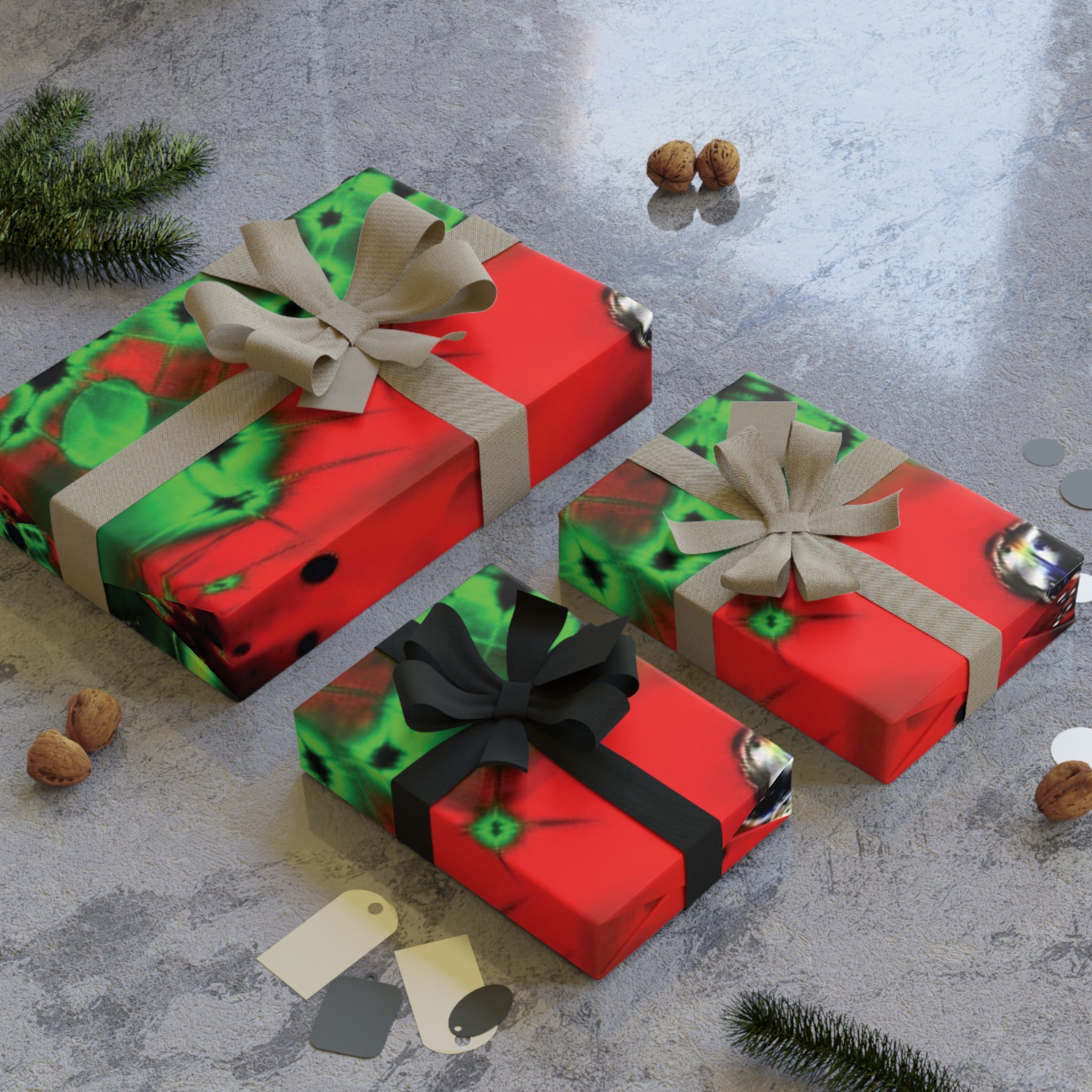 This roll of premium wrapping paper lifts the ritual of gift-giving into something a little wild and artful. The energetic green-and-red abstract print feels like a miniature painting wrapped around your present — intense colors with depth and motion that catch the eye and spark curiosity. The smooth satin surface gives a silky sheen that photographs beautifully under tree lights or on a tabletop. Because it’s printed on 95gsm fine-art paper sourced from sustainable forests and fully recyclable, you can wrap boldly while keeping waste in mind. Choose the shorter roll for single gifts or the longer roll when you’re wrapping multiple boxes or larger items — either way, the paper lays flat, creases crisply, and holds tape cleanly so the finished package looks composed and purposeful.