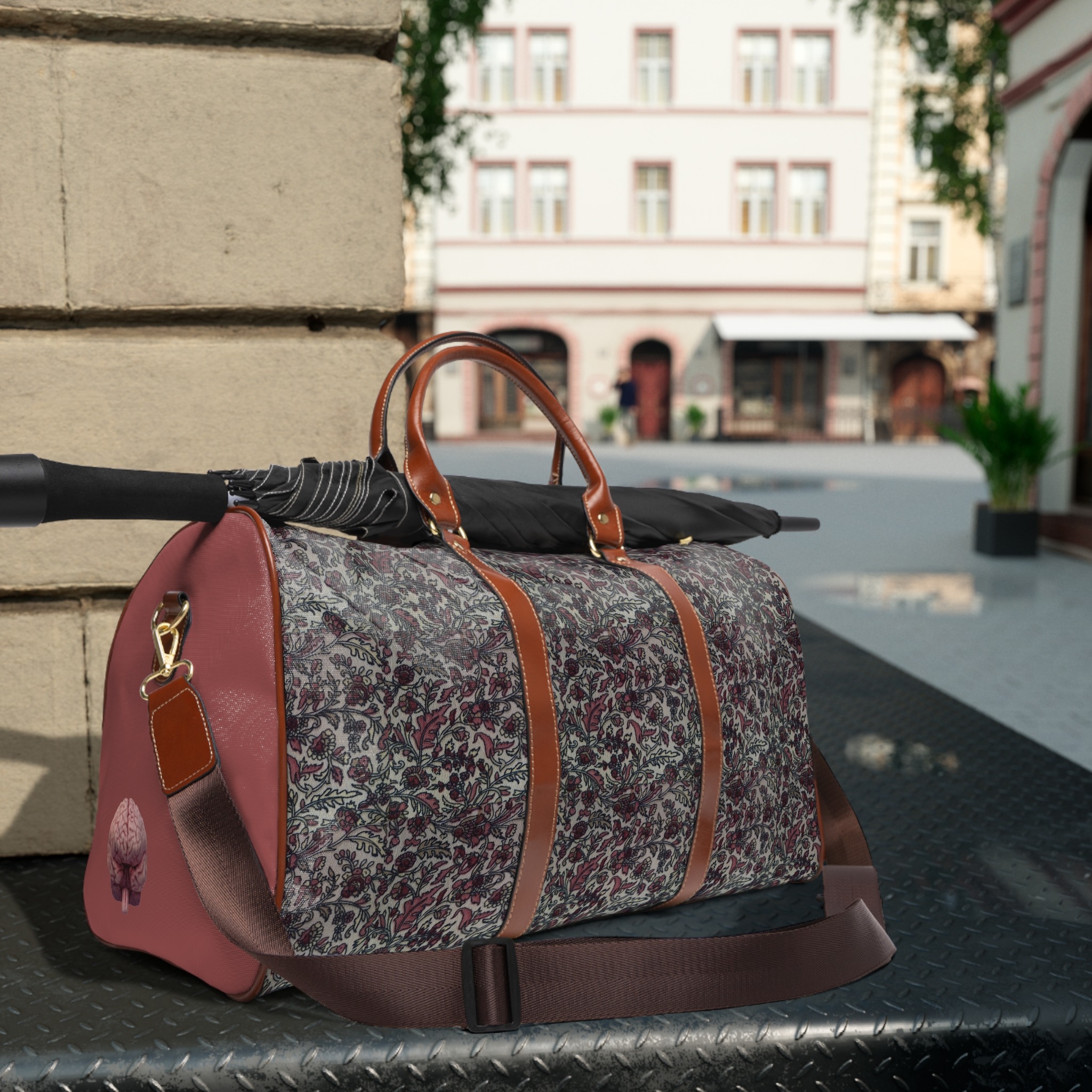 .: Brown PU leather handles and an adjustable shoulder strap