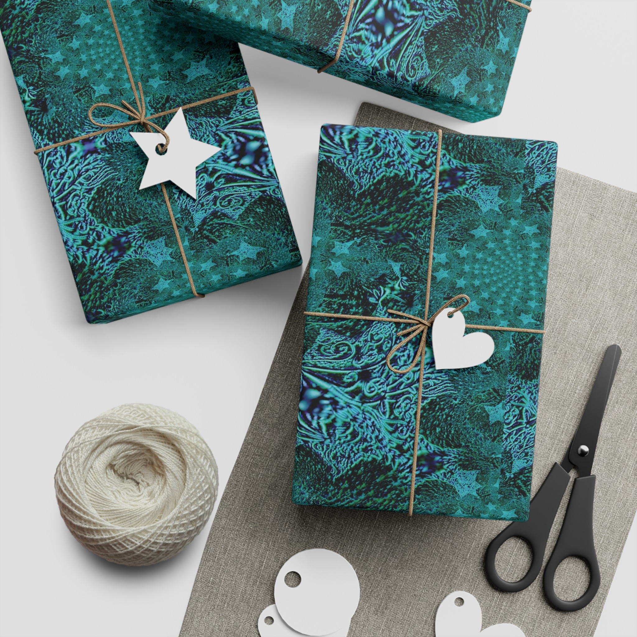 Deep teal and ocean-foam patterns flow across a satin sheet of fine-art paper, turning every wrapped present into a quiet, textured moment. The 95gsm paper has a silky surface that captures vibrant blues and greens with high detail, so corners and folds keep their crisp, painterly look. Use the smaller sheet for jewelry boxes and books, or the larger size for sweaters and craft bundles. Sustainably sourced and fully recyclable, this wrap brings thoughtful color and a tactile finish to seasonal exchanges, birthdays, or a cozy housewarming celebration.