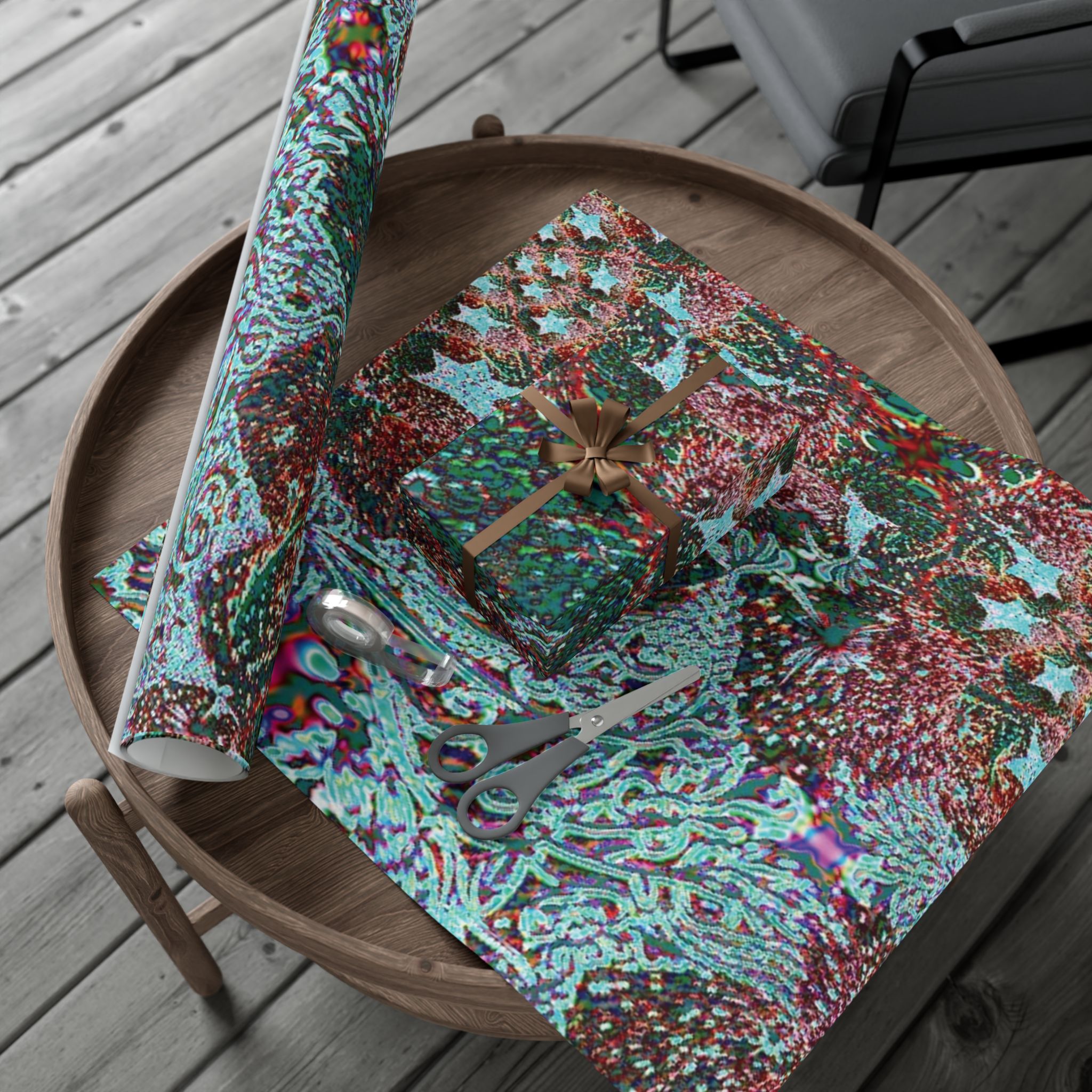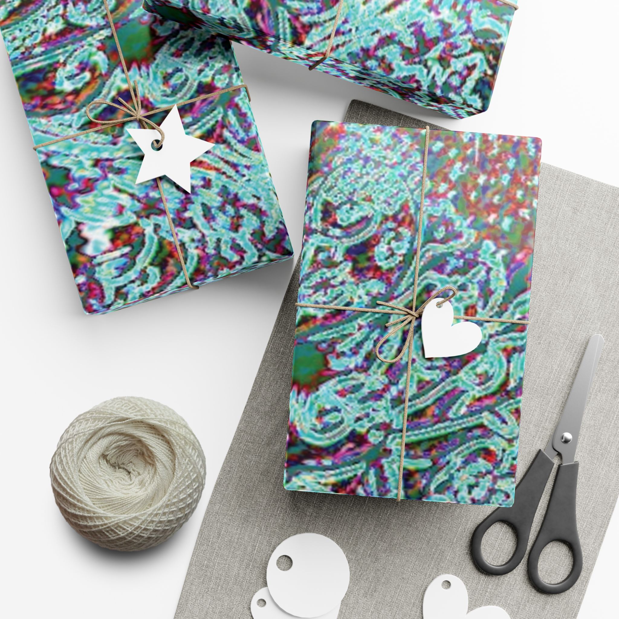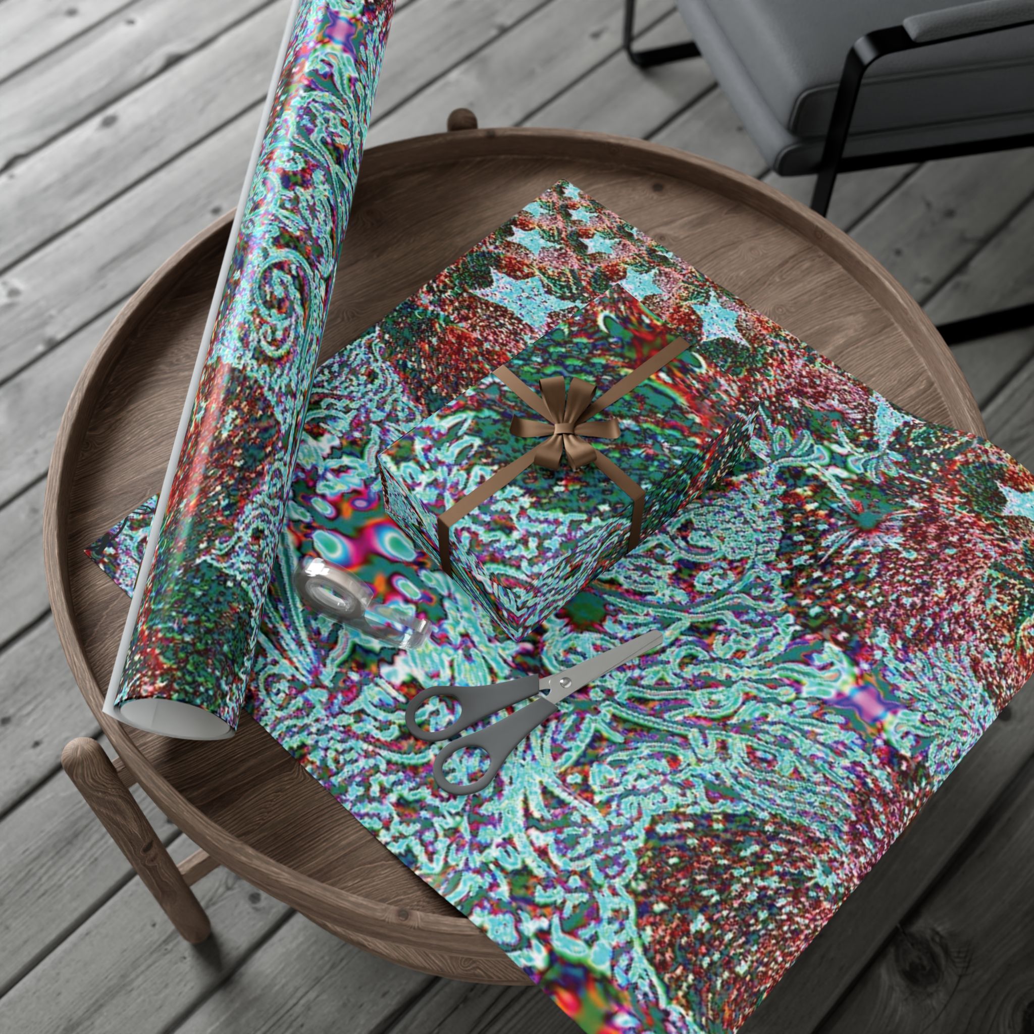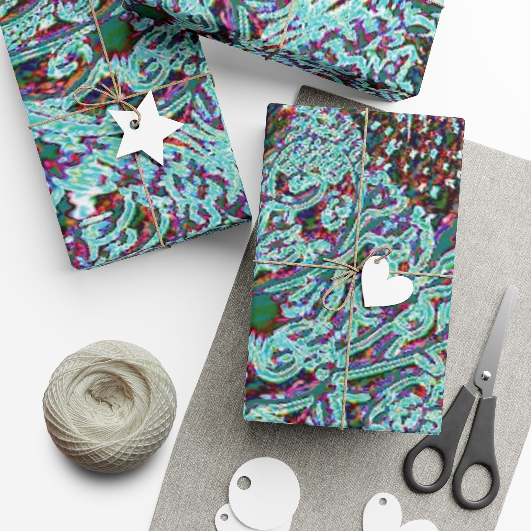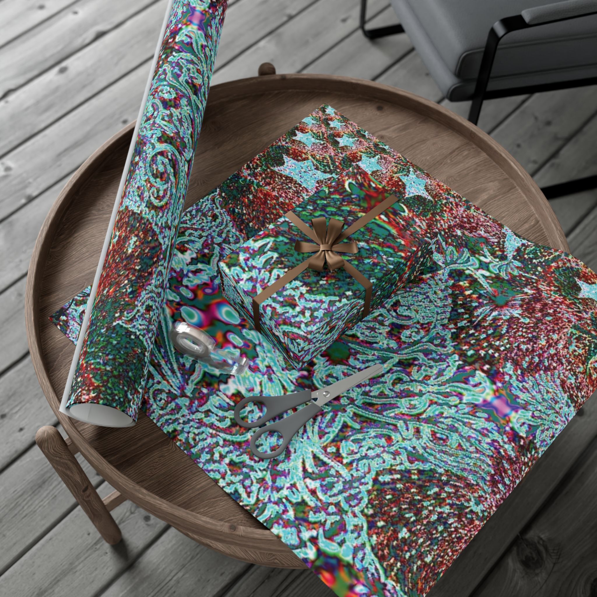 This is a roll of artful gift wrap that turns every package into a small, vivid celebration. The design layers swirling paisley-like forms in teal, magenta, and deep green, with a subtly textured look that reads like a handcrafted collage. Choose satin for a luminous sheen or matte for a refined, velvety feel. The paper is durable and flexible — it folds crisply without cracking and stands up to light handling or moisture. Printed with water-based, Greenguard-certified inks, it delivers bright, true colors while being kinder to indoor air quality. Use it for birthdays, housewarmings, or maker-market treasures when you want the wrapping to be noticed as much as what’s inside.