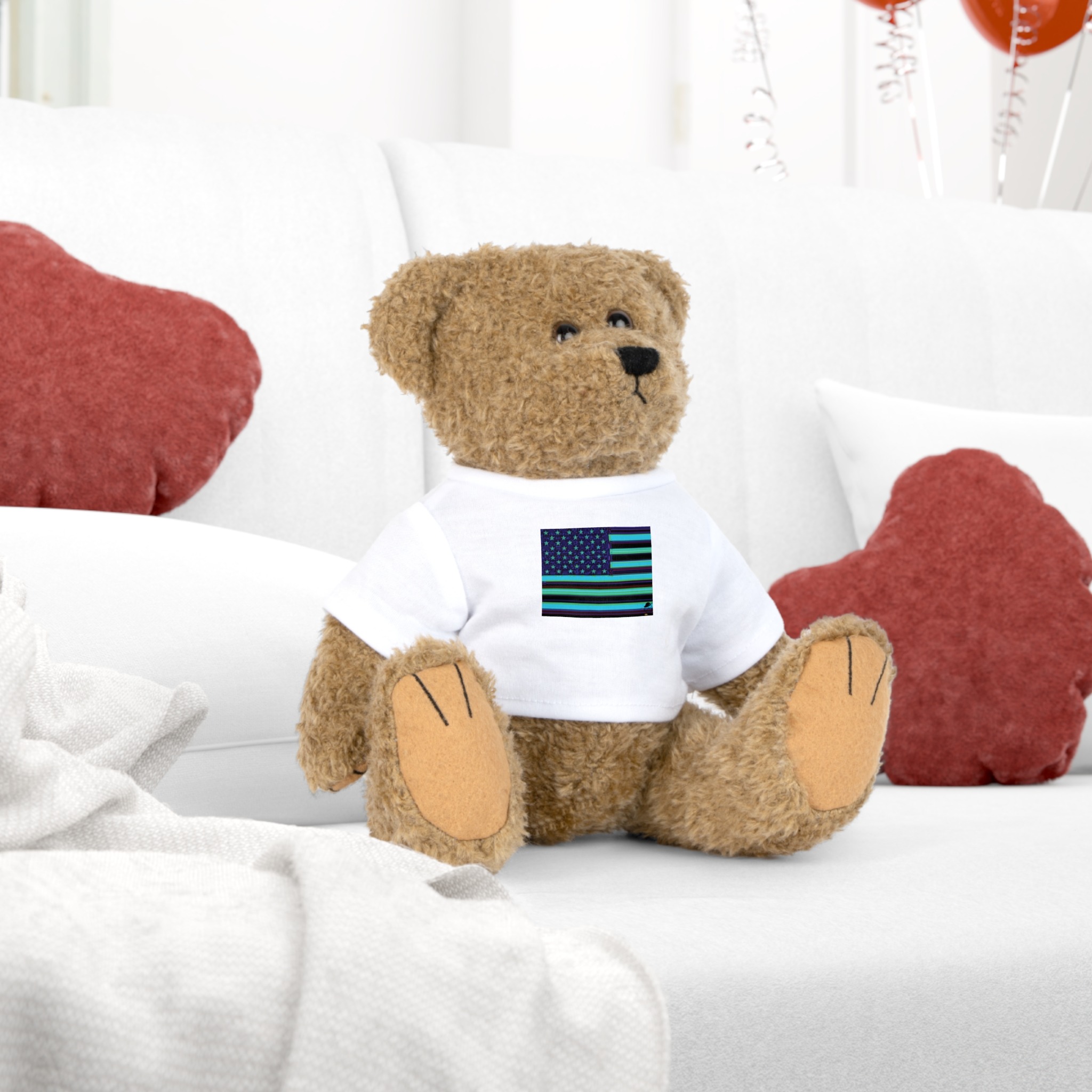 A cuddly, soft plush companion with a removable printed tee — made to sit in tiny arms or perch on a shelf while carrying quiet meaning. The fur is plush and resilient polyester that holds its shape through hugs and washes. Pick from a teddy, bunny, sheep, or elephant, each wearing a crisp white t-shirt with a single-sided graphic. The tee slips off easily for laundering, so the toy stays fresh and ready for bedtime stories, comfort on rough days, or as a gentle reminder of someone who cares. Lightweight and REACH-certified, this keepsake blends everyday durability with a simple, thoughtful design that fits into daily routines and special moments alike.